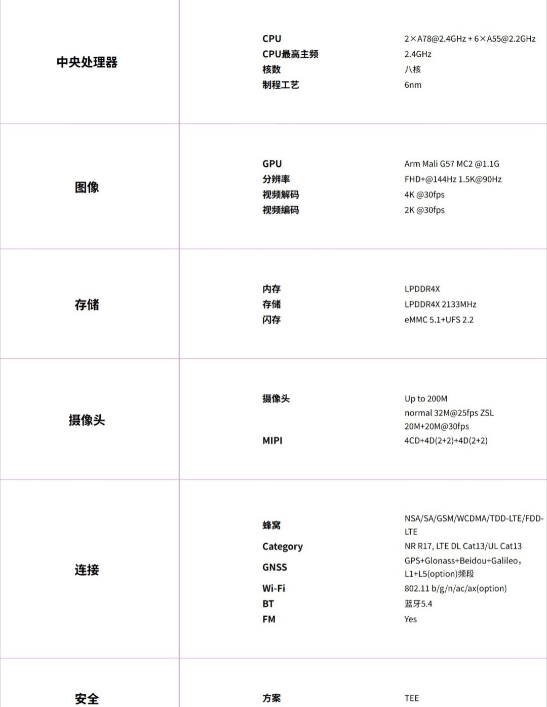 【紫光展锐 T9300 5G 发布:A78 大核 2.4GHz,安兔兔 V10 跑分 55 万】紫光展锐 T9300 高性能 5G SoC 现已上架官网,相当于 T8300 的升级版。这款 6nm 芯片采用八核 CPU 架构,A78 性能核心,主频达 2.4GHz,较上一代能效提升 38%;采用 Mali G57 双核 GPU 架构、高速闪存 UFS2.2 搭配 LPDDR4X,安兔兔 V10 跑分达 55 万分。从官方获悉,T9300 支持 5G 双卡双待、最新 Android 16,搭载第 7 代 Vivimagic 影像引擎,支持 2 亿像素和 144Hz 高刷显示,HiFi 级的音质;搭载 UNISOC Miracle Gaming 奇迹手游引擎。显示方面,它支持 FHD+ 144Hz、1.5K 90Hz 方案,支持 HDR10+,甚至通过了 Netflix 认证(满足海外机型需求);支持 VideoPQ 动态调整视频对比度,支持 VRR 动态刷新率、屏幕蓝光 & 阳光 & 夜光护眼显示、智能分辨率切换。影像方面,它采用了第 7 代 Vivimagic 影像引擎,配备全新第 7 代四核 ISP,支持 2 亿像素、32M ZSL、20+20M 双摄,还具备优秀的降噪能力,支持硬件多帧降噪 MFNR 和硬件时域降噪 TNR,图像更清晰;支持全新 3A 算法 5.0,人脸亮度色彩佳,对焦更准快,结合 XTM3.0 动态范围更好;架构全面重构,支持灵活客制化参数提升可调性、流程定制化和子模块扩展。此外,它还支持全新多帧多曝光 Raw 域超级夜景 XDR 算法,AI 加持暗光下图像清晰、细节丰富;支持精细化 AI 人像分割和深度估计,支持新一代 HDR 拍照算法,动态范围、对比度更优,性能表现更快。通信方面,T9300 支持 2G 到 5G 多模全网通,支持 3GPP R17,融合 NR NTN 卫星通信,5G MBS 广播;支持 5G NR,100MHz 通信带宽;SA 和 NSA 双模,双卡双 VoNR 和 VoWiFi;还有全场景覆盖增强技术,AI 智能网络切换;较上一代 5G 典型场景下功耗优化 20% 以上。