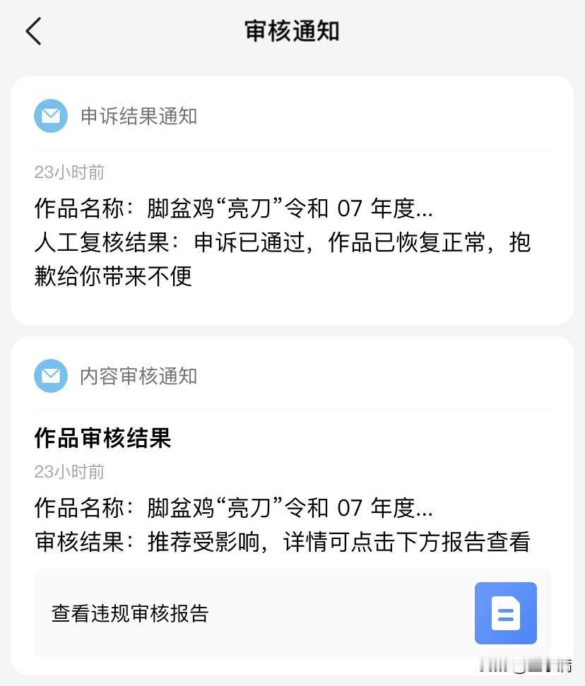 遇到系统通知“推荐受影响”,终于有了应对措施。 之前遇到好几次,原因各有不同,而且申诉都是不通过,以至于即使限流也不去申诉了,累了不想搞。 但昨晚我的内容正在快速上升期,我就在复盘以为为什么申诉不通过?复盘也是百思不得其解,最终,还是觉得努力再去试试看。 内心还在鼓励自己:不努力肯定没有可能,努力试试,说不定有转机呢! 仔细看了系统通知,说我夸大了内容,苍天大老爷呀,新闻就是这样发布的,我只是引用了内容,完全不存在夸大。 于是,立马在头条搜索新闻的内容截图,并划线标出数字重点,来证明我没夸大宣传。 再者,这次直接用头条的权威媒体的链接申诉,为自己辩解也写的有理有据,但也有礼貌。 一气呵成,提交完毕。 意想不到,不半小时就给作品恢复了。当时激动的跳起来了,还是第一次申诉成功! 有了这次成功经验,就真的反思之前申诉失败的原因,之前提交资料都是第三方的,但是这次我直接用头条中的权威媒体。 所以,是不是可以说,用本平台的权威认证媒体新闻是不是更具说服力?! 以后大家遇到类似问题,可以尝试下,说不定有用。