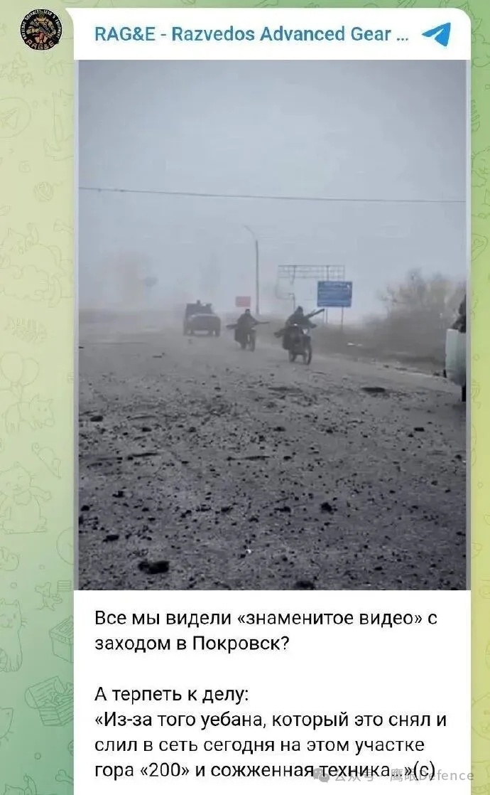 11月15日已经过去,波克罗夫斯克虽然被俄军渗透进入,但并未被拿下,包括俄罗斯军事博主在内,综合各路信息来看,乌克兰军队正在改善波克罗夫斯克的局势,至少是增加俄军拿下这座小城的难度。为了应对浓雾的影响,乌军使用了带有热成像仪的无人机来恢复空中优势,包括特种部队在内,乌军多部纷纷在浓雾中攻击俄军,尤其是俄军集结地,诸如打击了正在顿涅茨克地区扎特什克村集结的俄军第51集团军下属第1、第9摩步旅,俄军应该是没想到浓雾提供的遮蔽会这么快就被乌军破解。一些俄罗斯军事博主承认浓雾已经无法再为俄军提供掩护,此前趁着浓雾冲入波克罗夫斯克的部分俄军已经被消灭;还有一些俄罗斯军事博主则成为了“卖国贼”,他们在10日和12日发布了俄军利用浓雾从M30公路进入波克罗夫斯克的大量视频,并大赞俄军这种利用浓雾掩护前进的策略,但第二天就被其他俄罗斯军事博主痛骂,“拍摄视频的白痴”为乌克兰炮兵定位了俄军后勤路线,果然,到了第三天,也就是13日,一切该发生的都发生了。
