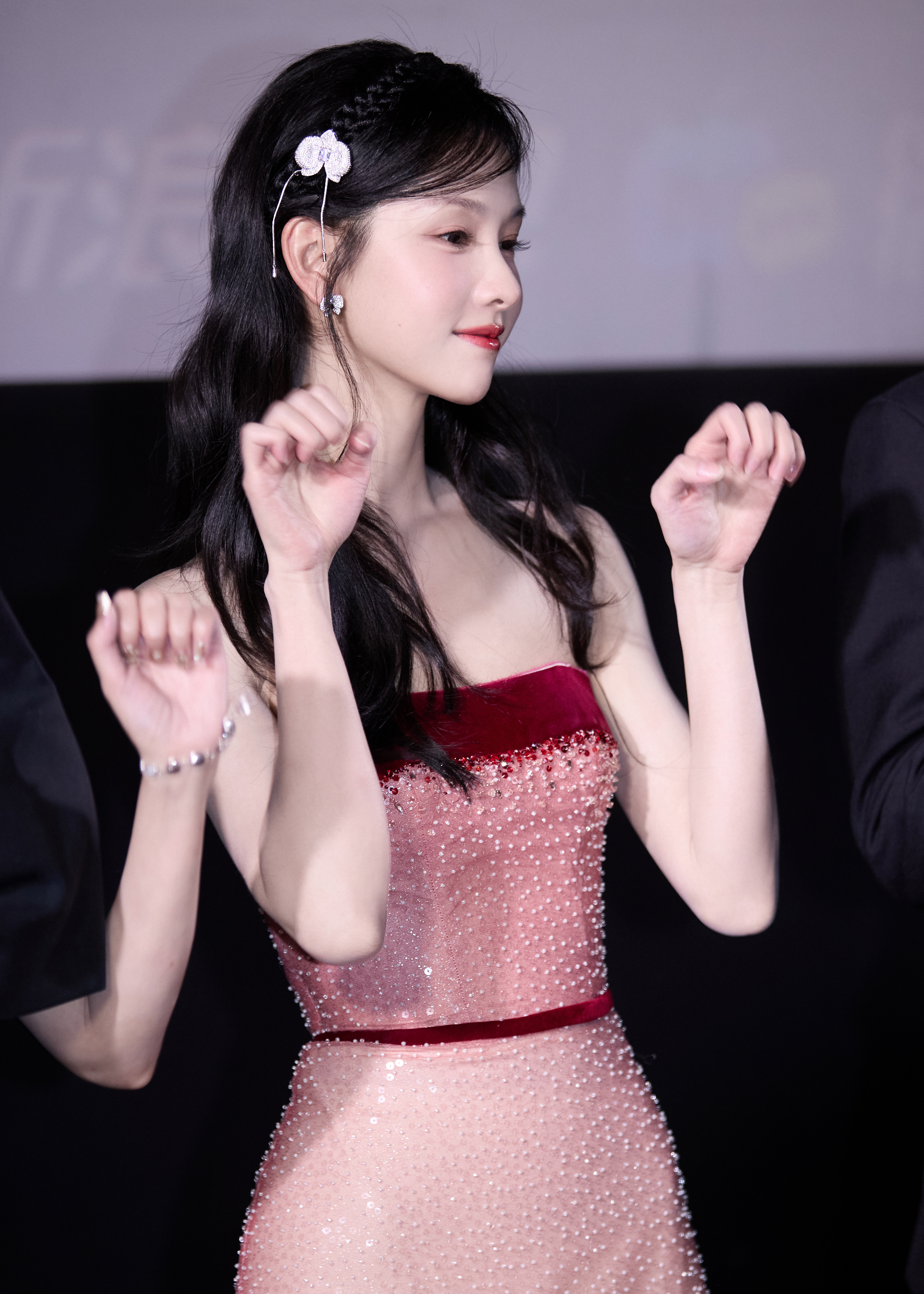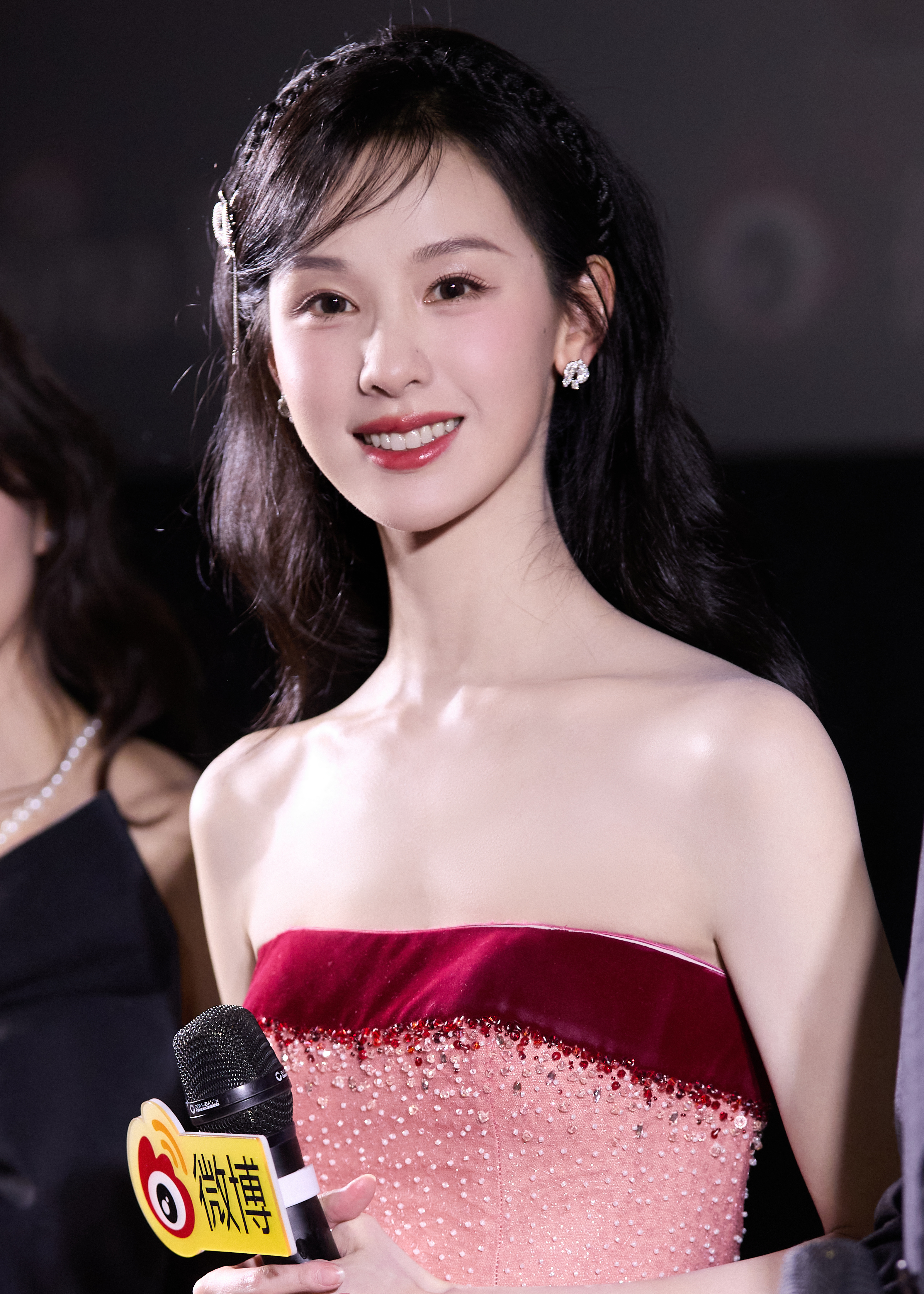 刘亦菲把死亡玫粉穿出了定制款的感觉,这种颜色普通人穿上分分钟黑三度,她居然能穿出