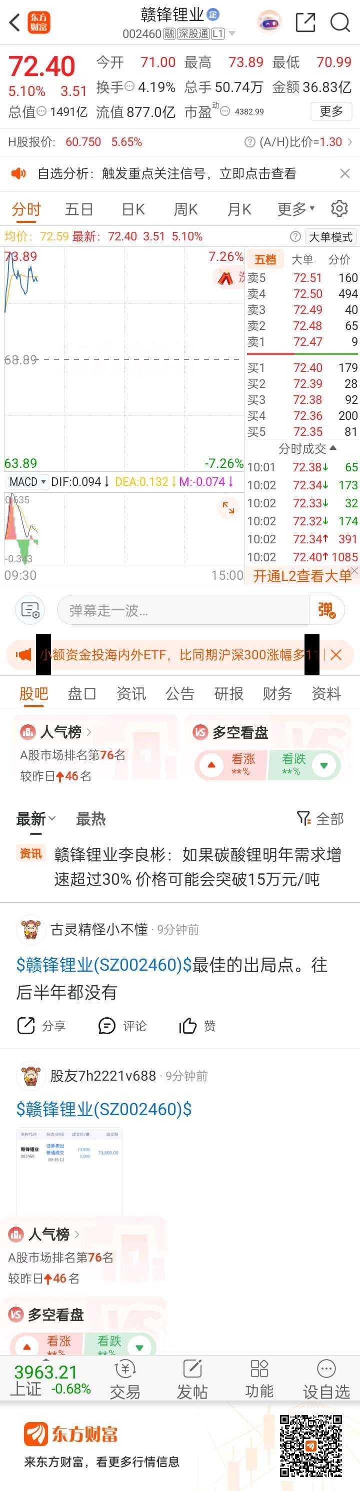 10:18大赣锋,继续冲——哈哈哈哈哈赣锋锂业(002460)东方财富