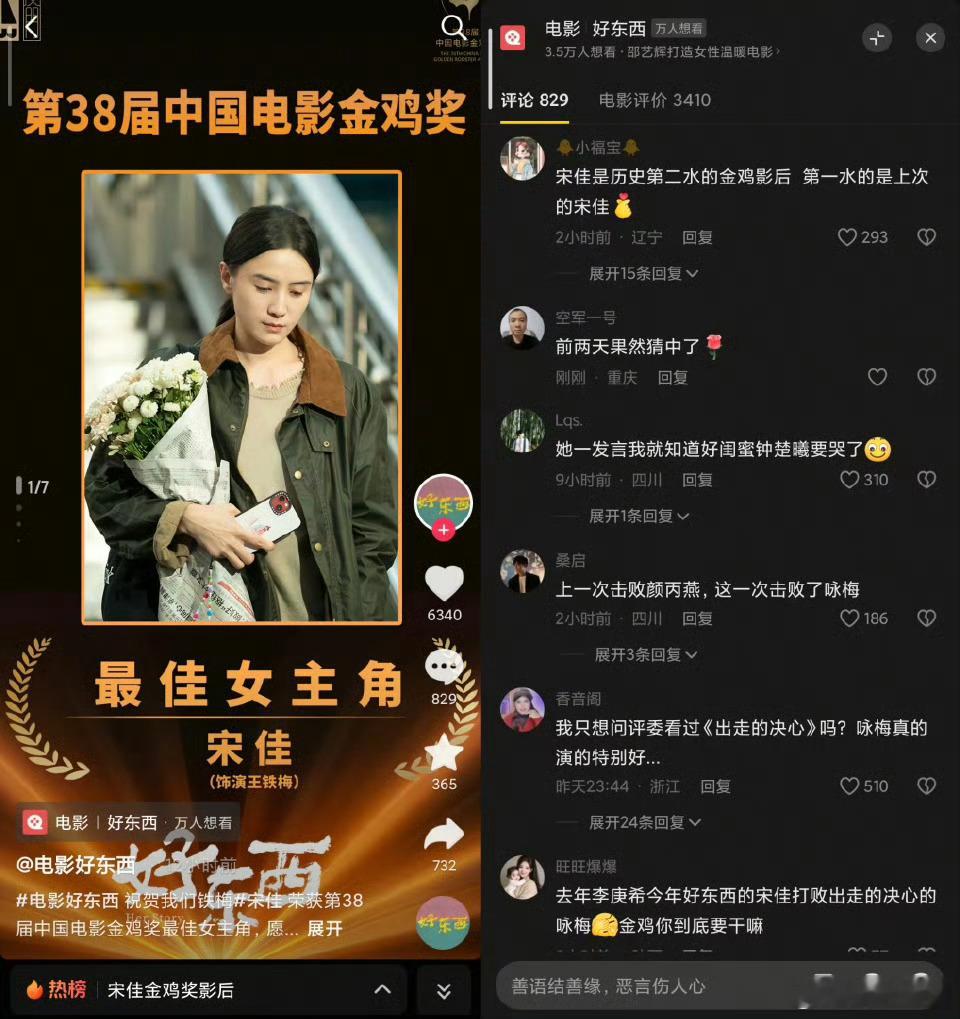 意难平!第38届金鸡奖最佳女主角是宋佳,但网友们都吵翻了!甚至写出了这样的: