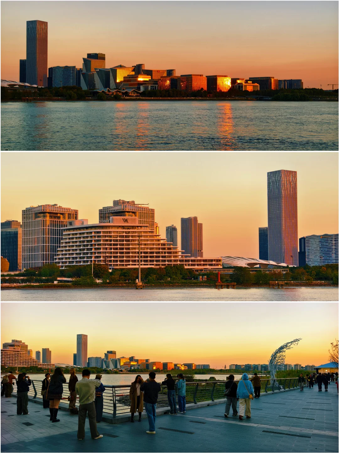 🔥西岸梦中心是位于上海徐汇滨江南段核心区的文商旅综合体,由1920年始建的龙华水泥厂改造而来。 🔥日落时分,太阳在西边落下,黄浦江对岸的前滩建筑反射浦西的日落,形成了浦西看浦东"日落晚霞"的奇观,连黄浦江面上也有日落的反射光。