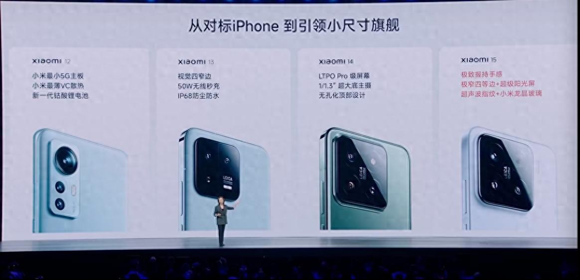 去年小米15系列的发布,直接从芯片、设计、电池等各项参数指标和iPhone比对。
