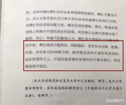 如果说张爱玲的作品是:爬满虱子的华美旗袍,映照都市的斑斓和荒凉;那萧红的作品就是:东北大妞身上朴素的大红棉袄,可以慰藉和温暖颠沛流离的人生。难怪复旦教授说:大家喜欢张爱玲而不喜欢萧红,是很可悲的!