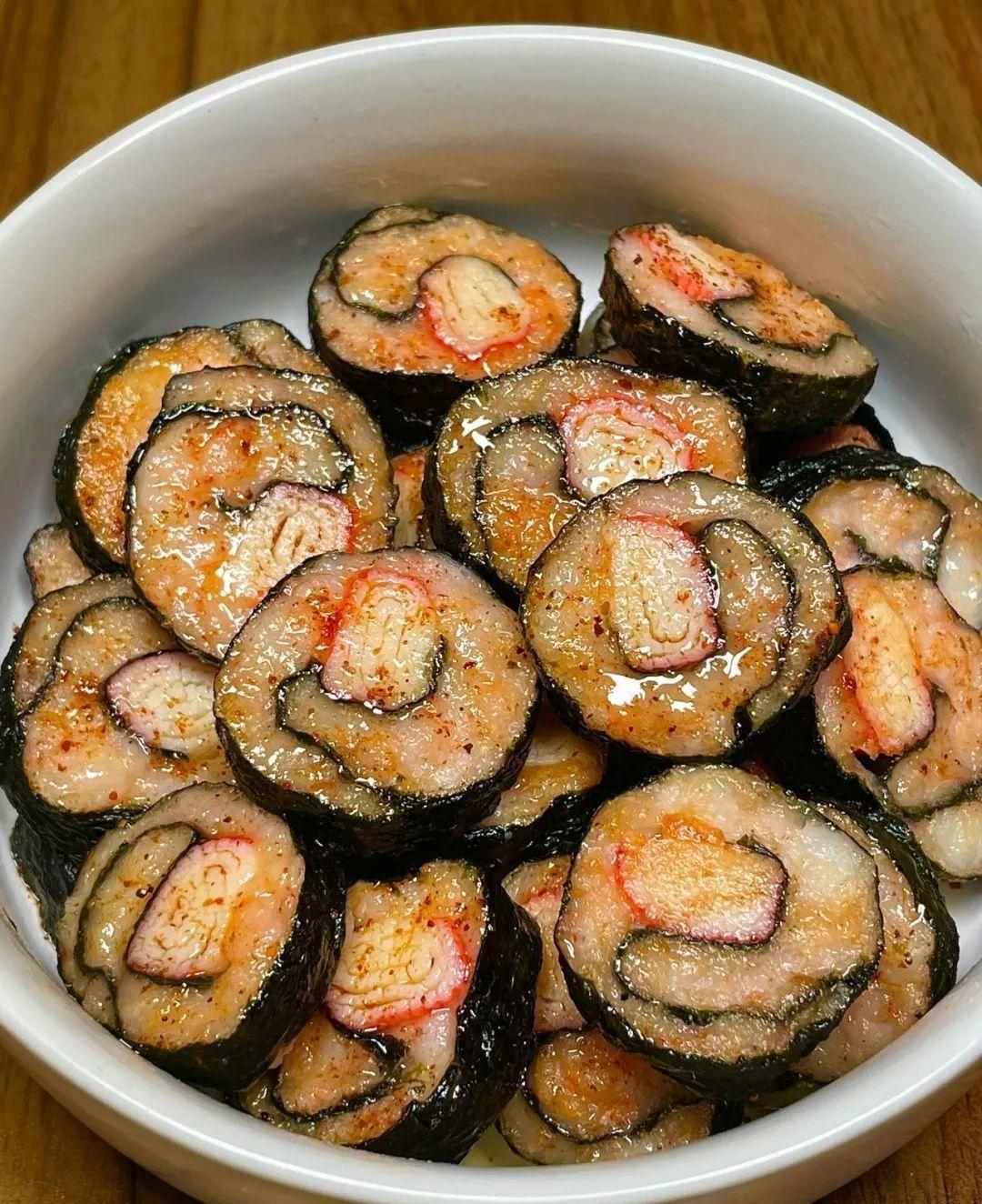 虾滑海苔卷这个听着就很有意思,感觉是一种创新菜。虾滑我知道,就是把虾肉打成泥状嘛,口感应该很嫩滑。海苔我也吃过,就是那种干巴巴的紫菜。但是把这两个东西结合在一起,我还真没吃过。