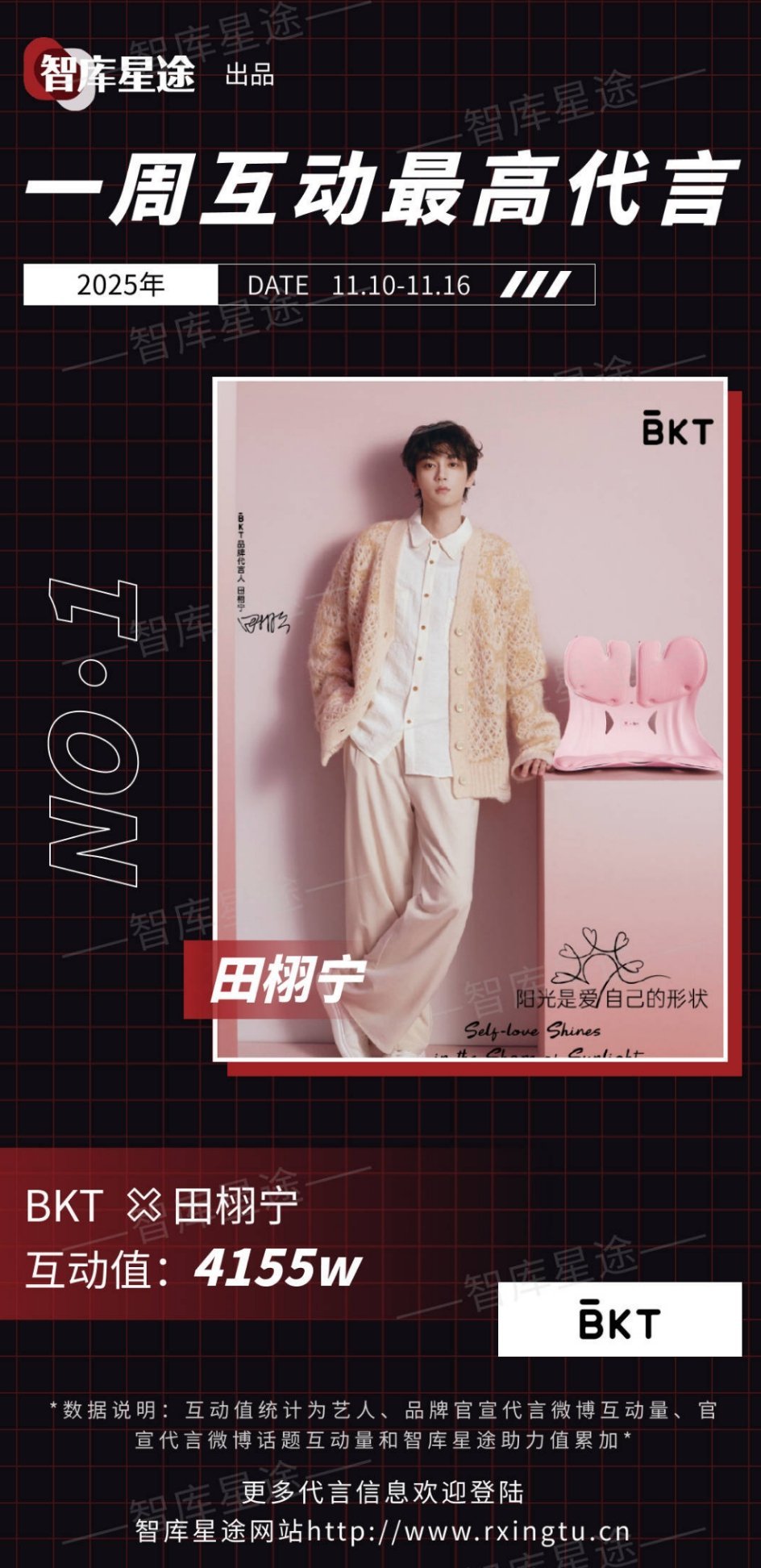 上周新官宣代言互动值最高田栩宁