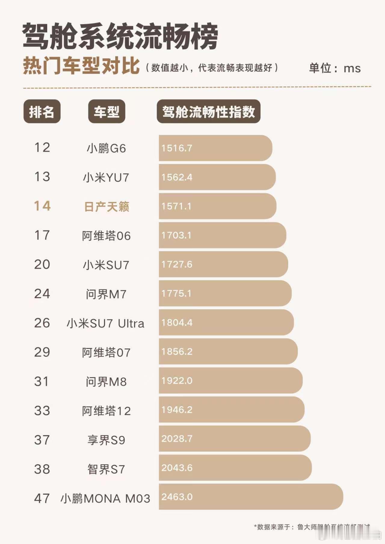 燃油车智能体验拉胯?东风日产全新天籁·鸿蒙座舱5第一个不服!🚀全新天籁这次带着鸿蒙座舱5杀回战场,直接打破次元壁!15.6英寸华为智慧屏+首搭鸿蒙5系统,让这台燃油车秒变“智能终端”。语音唤醒快人一步,屏幕滑动如德芙般丝滑,就连多任务处理都稳得一批~鲁大师最新实测数据曝光:34项交互单元、10轮严苛测试,全新天籁·鸿蒙座舱5交出了1571.1毫秒的流畅成绩,在53款车型中强势杀进前14!这表现,直接把“燃油车不智能”的标签按在地上摩擦。原来燃油车也能这么聪明!锁定鲁大师测评视频,看全新天籁如何重新定义“新势力燃油车”!