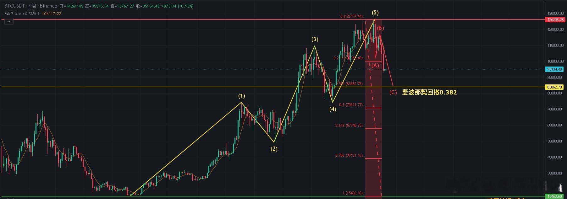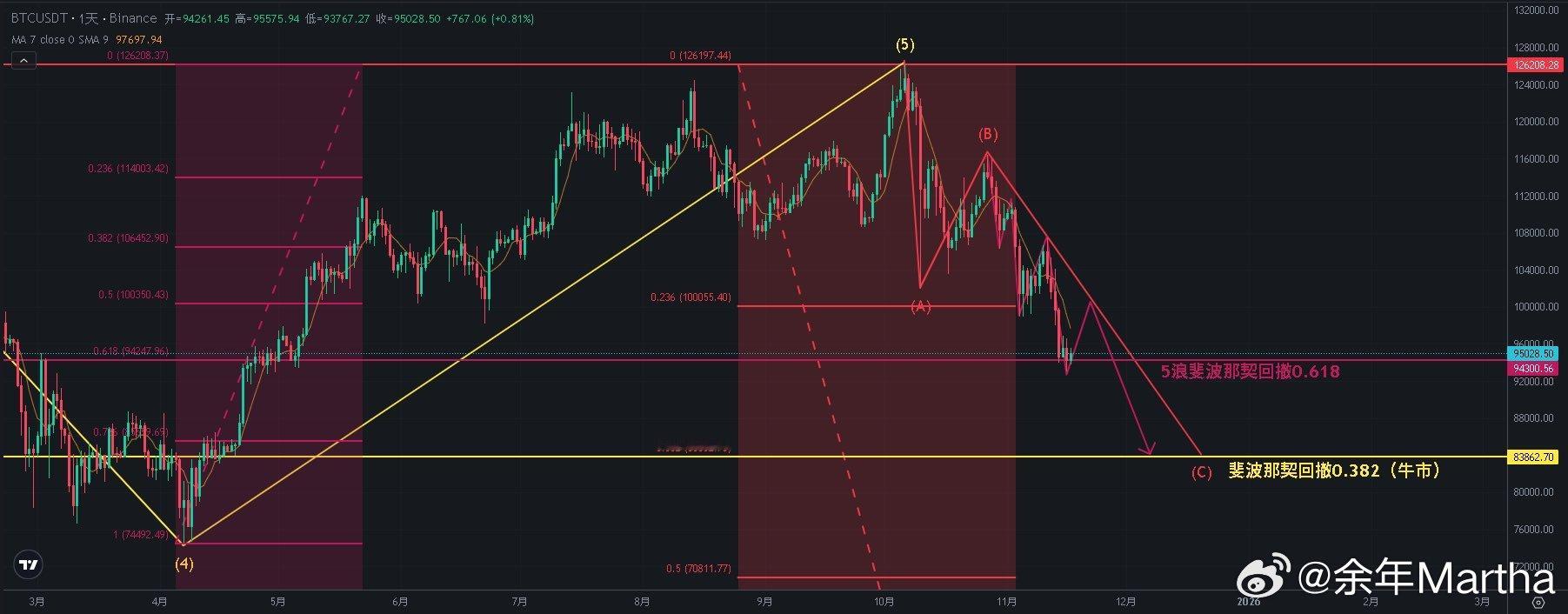 BTC 主力节奏更新📈 多周期结构:•周线:回撤至牛市 38.2% 区域,属中期潜在炒底带。•日线:五浪回撤后进入 61.8% 黄~金反弹区,具备阶段性反弹动能。•4H:反弹至下降趋势线可继续做空。🎯 短线策略:今日属抢反弹航情,目标 100,000;触及后以逢高做箜思路为主。