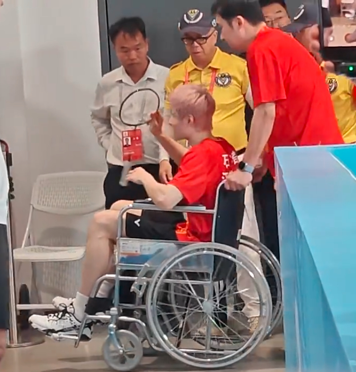 石宇奇又伤了!第十五届羽毛球男单1/4决赛,石宇奇对阵翁泓阳。石宇奇在21-19赢下首局之后,第二局3-6落后时因伤退赛,翁泓阳晋级四强。赛后,石宇奇坐在轮椅上去接受检查。希望无大碍!