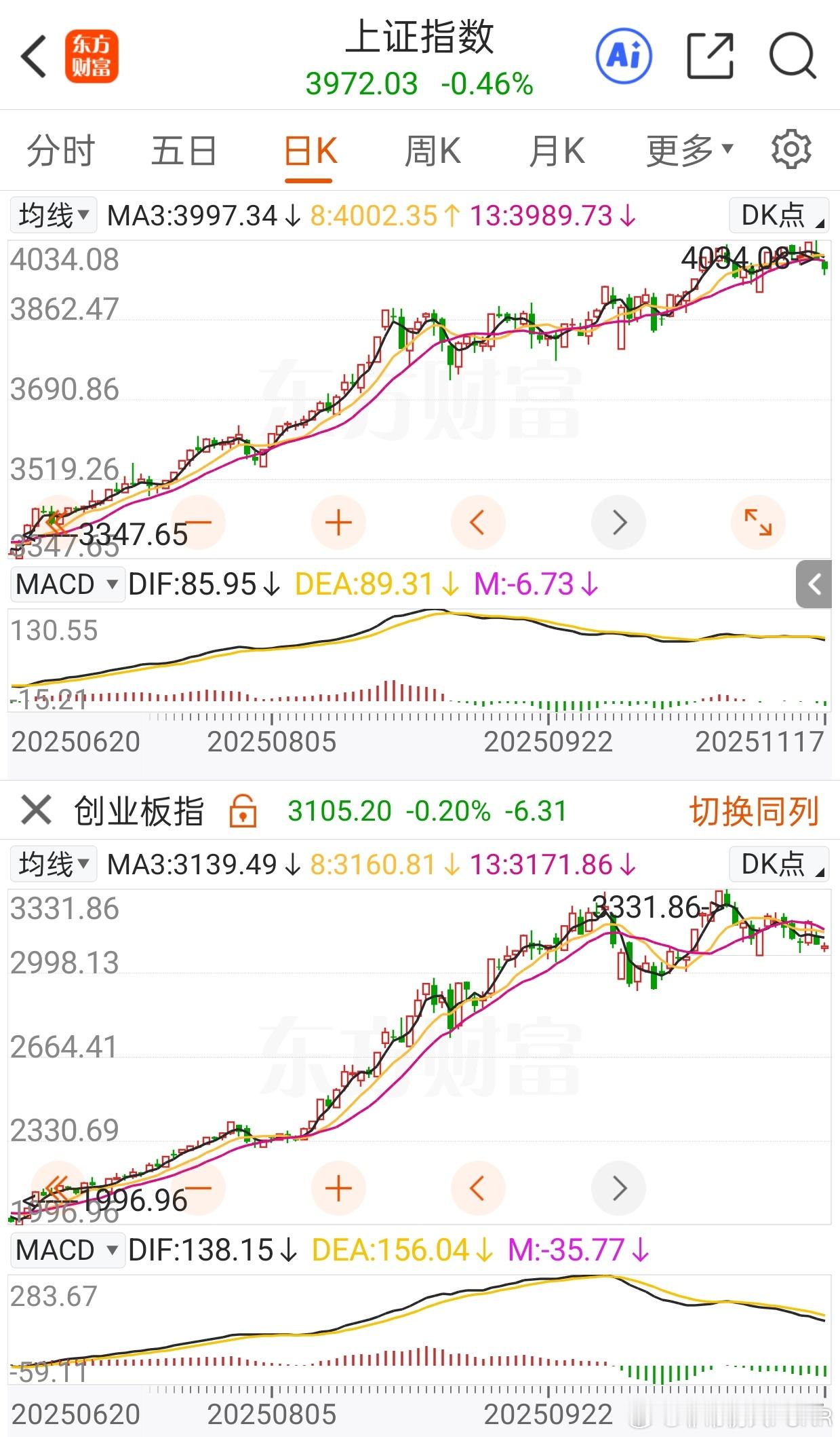 悠着点,后市回踩3674并非遥不可及205/11/17/非常观点|核心提示:1、盘面很弱,全天几乎都在水下运行,量能不足2万亿,上证、东财全A继成指、创指跌破支撑线,指数全面转空,无热点,防守应该成为重点,4000得而复失,只能说明市场并未做好突破的充分准备,以退为进或许未来空间更高一些。2、月K的超买叠加日K的顶背离,调整只是时间问题,至于幅度,回抽3674概率不小,这对大多数个股也许是灾难,所以还抱着垃圾股当香饽饽的要小心啦,过去7个月落后指数,未来3个月或更长账户再缩水3成并非不可能,A股料敌从严从来不是什么坏事。3、炒股玩基的尽头要么金盆洗手一了百了,要么专注场内,心无旁骛,跨境ETF或是终极选择,还在为构建交易体系混沌不知所措的潜心静气好好研究一下场内跨境标的历史走势,定会有意想不到的收获,当你关闭了一扇狭隘朝内的小门,无形中开启了一扇面朝世界的大门。文中图例仅供参考,不作推荐用。