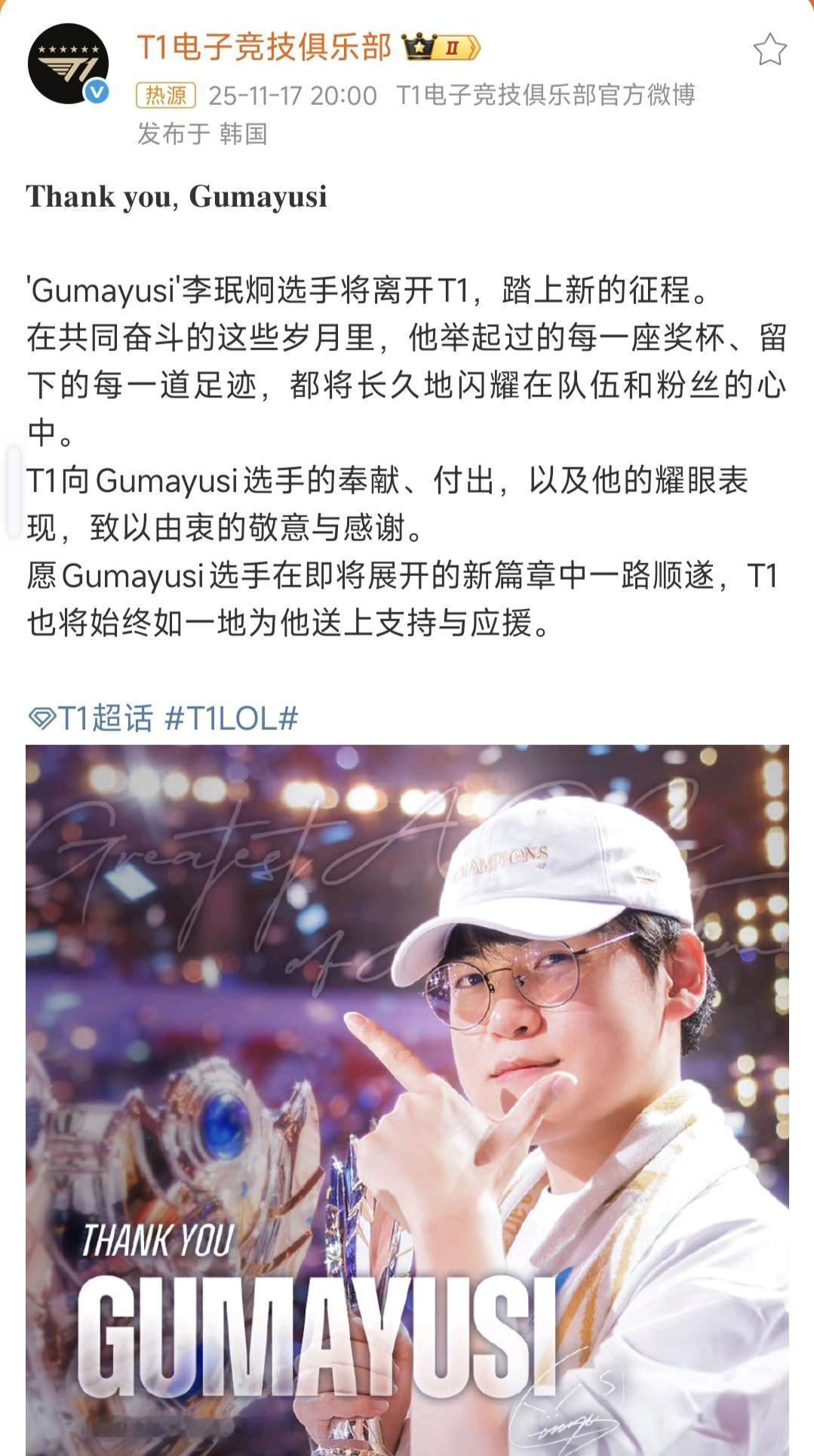 gumayusi官宣离队,明年lpl有希望了! lck转会期最新消息,关于t1