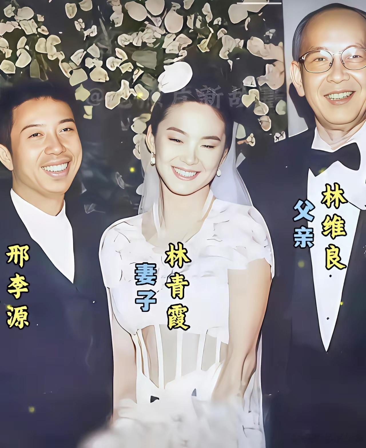 这张照片拍摄于1994年,是林青霞婚礼上和丈夫和父亲的合影。