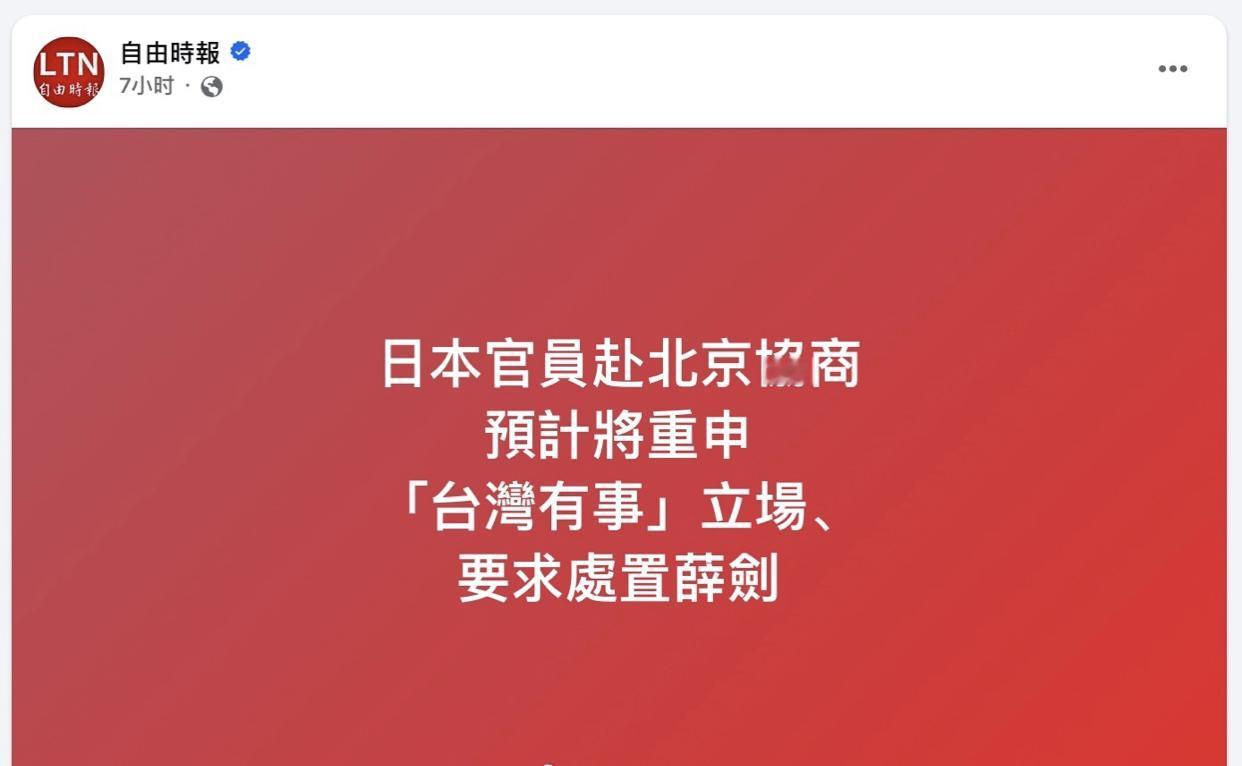 台媒:日本外务省官员赴北京协商,预计将重申“台湾有事就是日本有事”立场,并要求中方处置薛剑。 这是真的吗?日本人敢到中国来提这样的要求?台媒造谣就靠一张嘴,估计岛内还真有人信这样的说法。