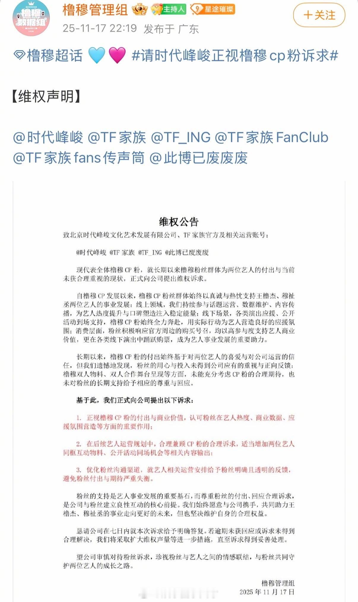我去,时代峰峻这又是怎么了,橹穆cp粉在维权??