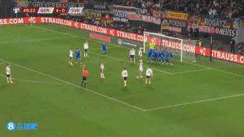 直播吧11月18日讯德国vs斯洛伐克第49分钟,斯洛伐克门将手接回传球,德国获得禁区内间接任意球,萨内爆射被挡出。