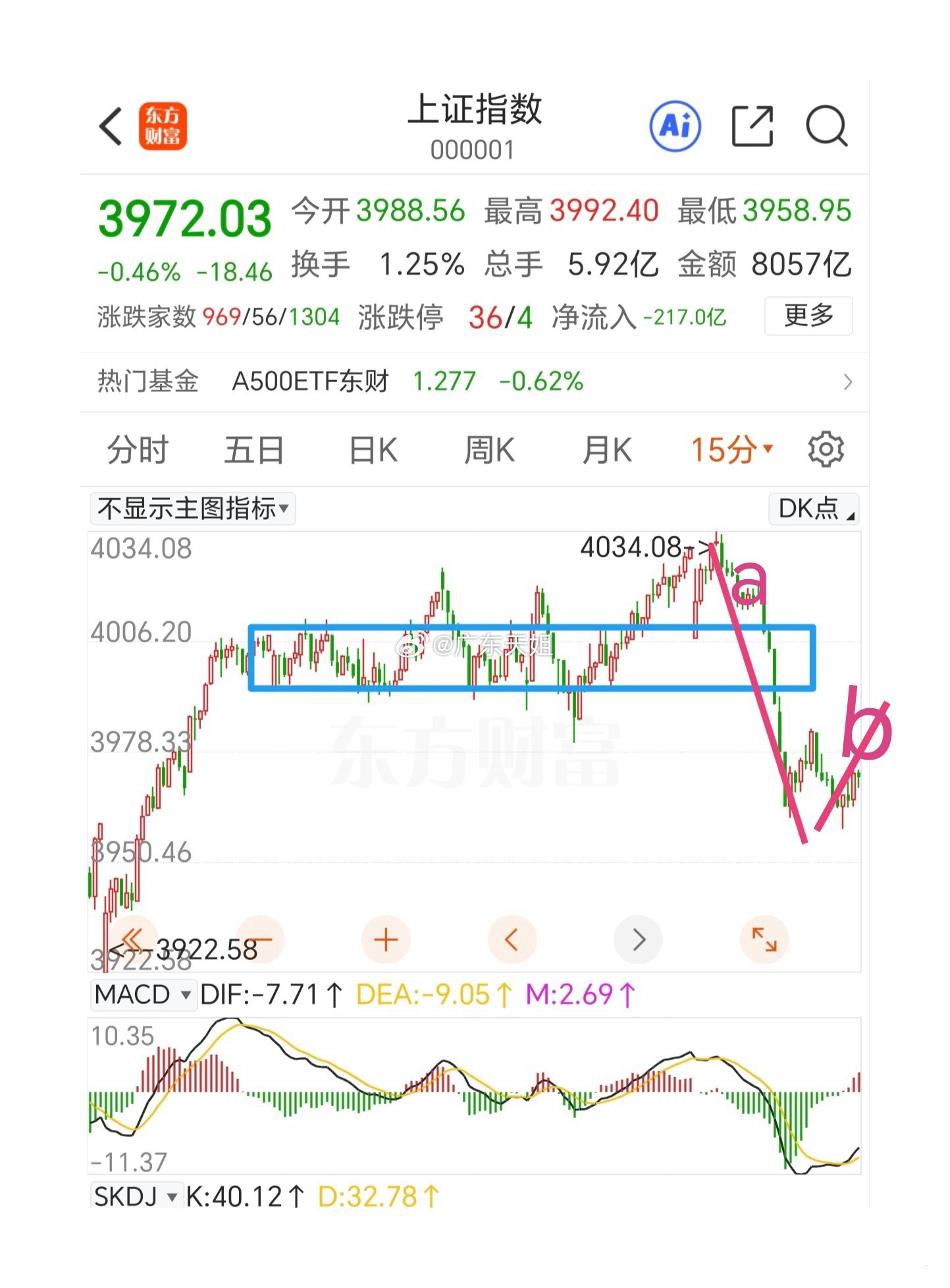 观察b浪反弹的力度,冲高容易回落。从4034开始的下跌没有中枢,也跌破了左侧的中枢,今天的反弹会是二卖。反弹如果连3390点都上不去,就是二三卖合一,从而也构成了弱势的中枢,对应到再次的下跌段会更猛一些。不要忘了还有小c段的下跌!操作上,今天的反弹会是一次不错的做T机会,趁反抽要择机卖掉一点,在相对低位再加回来。卖阳买阴,今天不适合开新仓,也不适合追阳进场。隔夜美股下跌会影响到咱们开盘,可能会再次考验一下3958点的支撑,开盘有调整不要恐慌,探底冲高非常容易回落。总体思路就是这样,冲高减仓,跳水接回,做T。