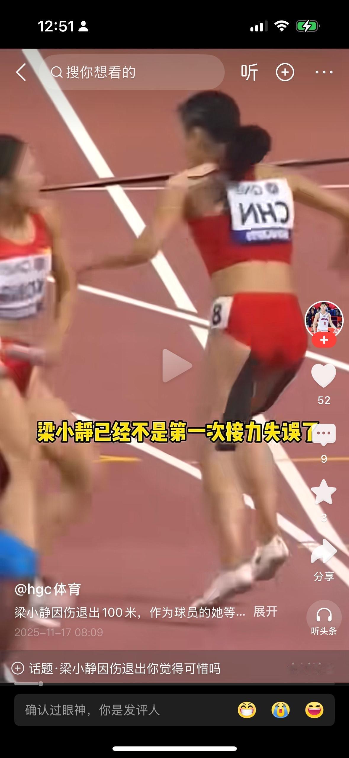 梁小静这个接力的失误怎么感觉怪怪的?这种低级失误不应该在这种水平的比赛中出现,是不是收了黑钱呢?
