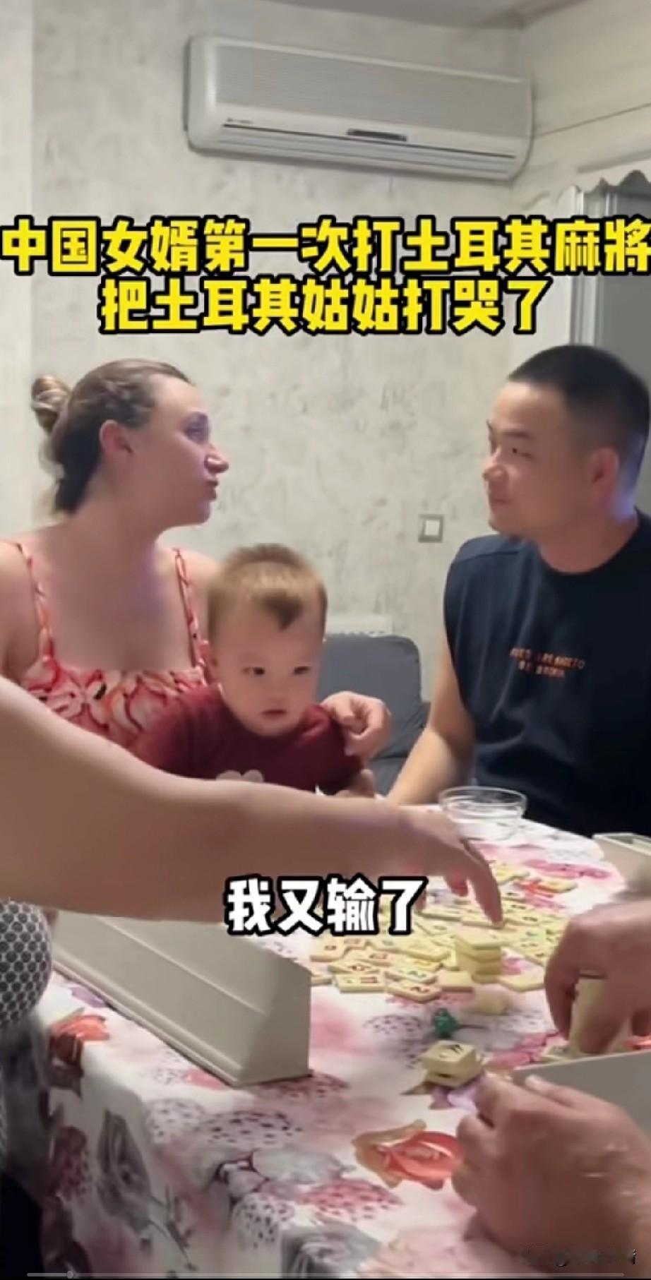 男子带着孩子和老婆回到了土耳其, 一家人受到了土耳其亲戚的热情接待, 吃饱喝足后一家人没事, 就开始了打麻将, 媳妇总是输, 有点不想玩了, 旁边的老公表示让我试试, 虽说打法不一样, 不过这可难不住聪明的中国人, 看了几遍就明白了, 老公一出手就知有没有, 中国女婿这智商可不是吹的, 一下子赢了好几场, 把土耳其的姑姑都打懵了, 土耳其老婆瞬间化身小迷妹, 直夸自己老公厉害, 中国人的智商可不是盖的, 确实是厉害, 土耳其姑姑连输几场, 眼泪的出来了, 大家对于中国女婿在土耳其打麻将打哭土耳其姑姑怎么看? 土耳其 土耳其旅行 土耳其丈母娘 土耳其岳父 福建人在土耳其 土耳其老丈人