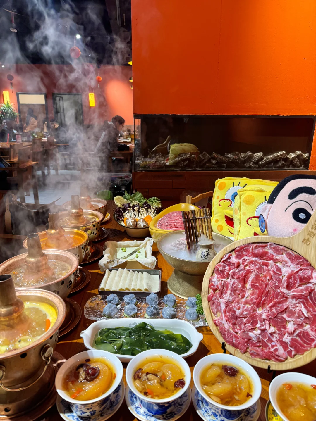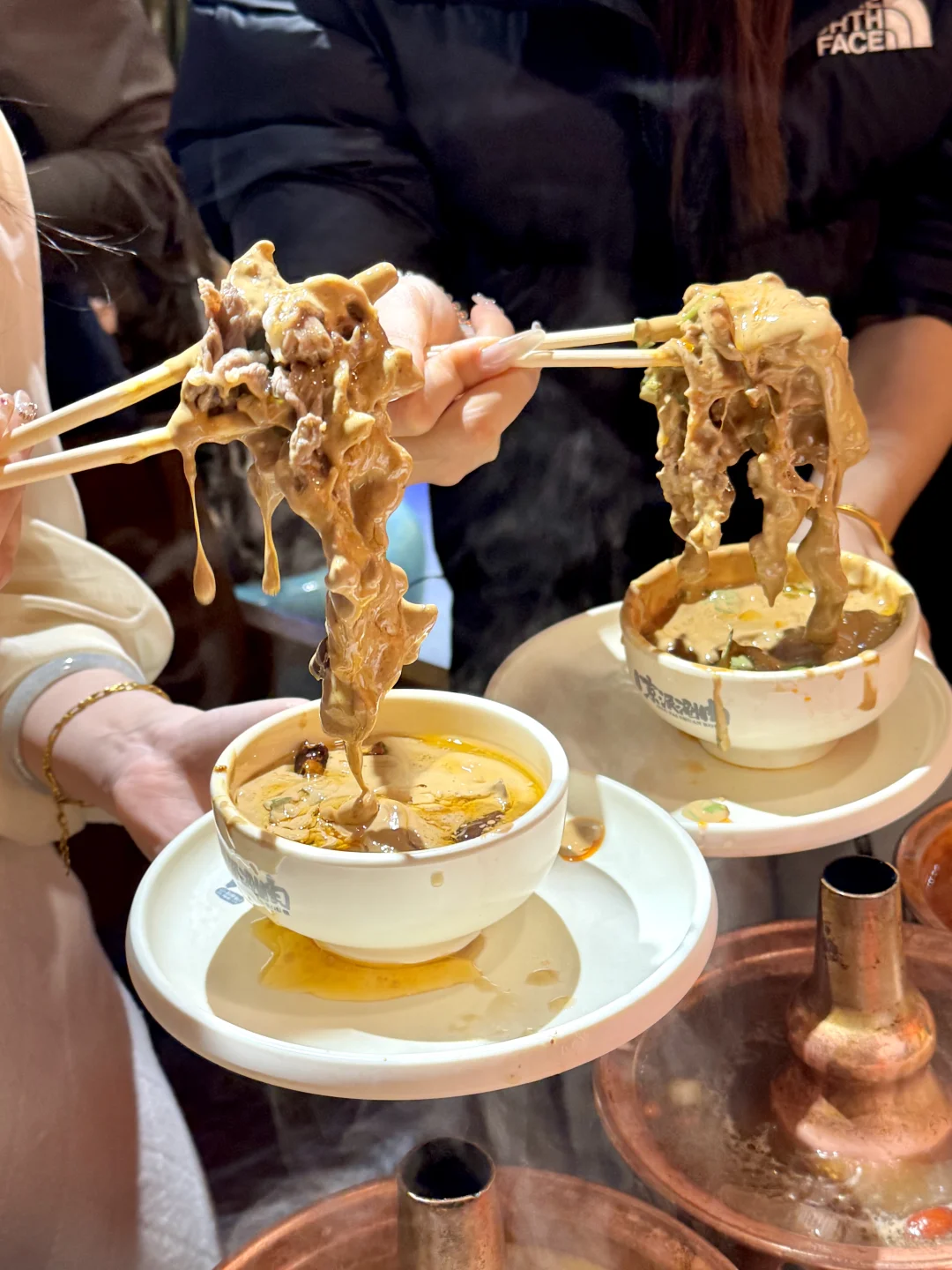 一到冬天 就想吃铜锅涮肉!! 尤其这家烟火气十足的小店 糖油饼配火锅 好吃多多咧~ 一口爆糖的糖油饼 贼香! 🌟锅底10r的铜锅涮肉 麻辣🌶️番茄🍅酸汤、菌汤🍄清汤 锅里种类多 每个都好好吃