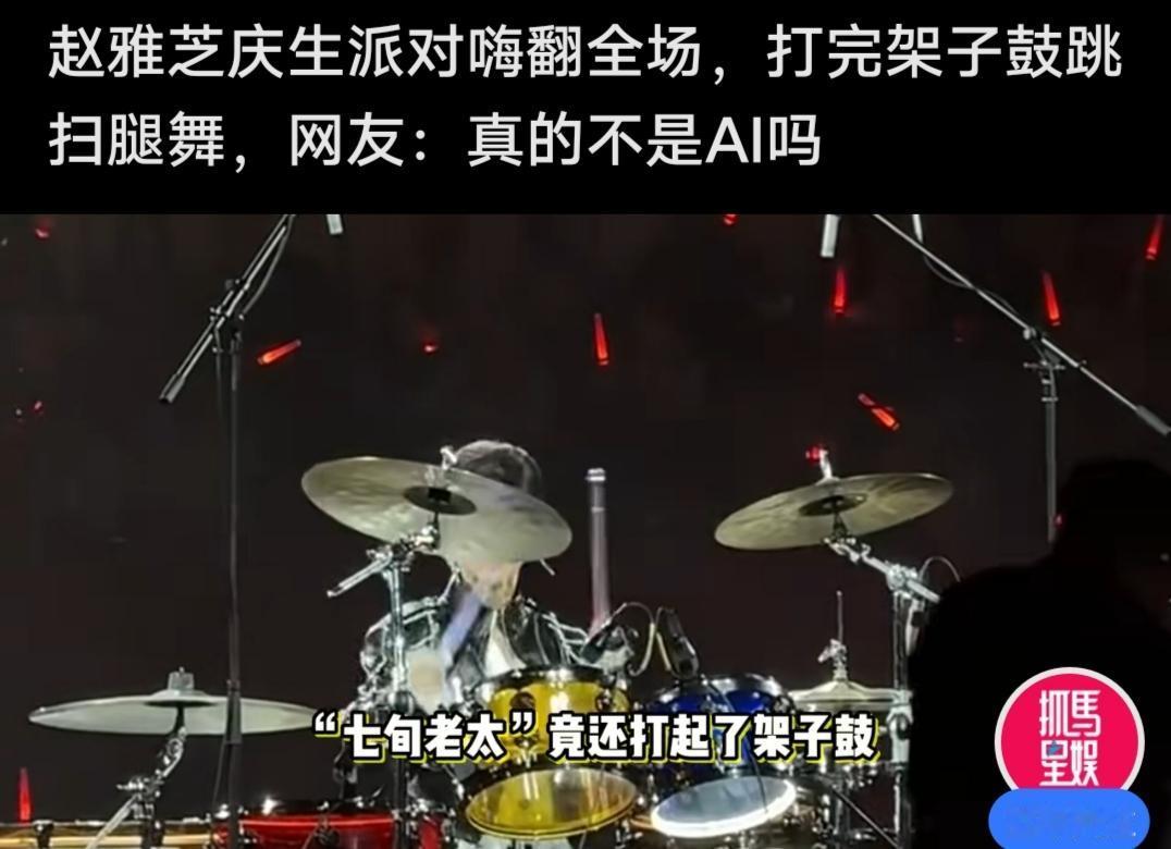 赵雅芝庆生派对嗨翻全场打完架子鼓跳扫腿舞,网友惊呼:真的不是AI吗? 相关媒体发布的报道,近日赵雅芝开庆生派对,如今72岁的她状态超级好,打完架子鼓,还跳了段扫腿舞,完全不像7旬的人,很多人都感叹她保养得太好了。 是呢,想当初,新白娘子传奇播出时,我还在上小学,当时在乡上上学,家离学校有步行差不多半个小时路程,中午趁午休的时间都要跑回家看。新白娘子传奇是经典作品,后面几乎每个暑假都会有台放映一次,一直到最近几年。那时候真的太喜欢看了,赵雅芝也真的是很美,一直美到现在。 所以,生日派对上,打架子鼓的和跳扫腿舞的都是女神本人,不是Ai,女人真的要好好爱自己,友友们还记得新白娘子传奇吗?还会看吗?