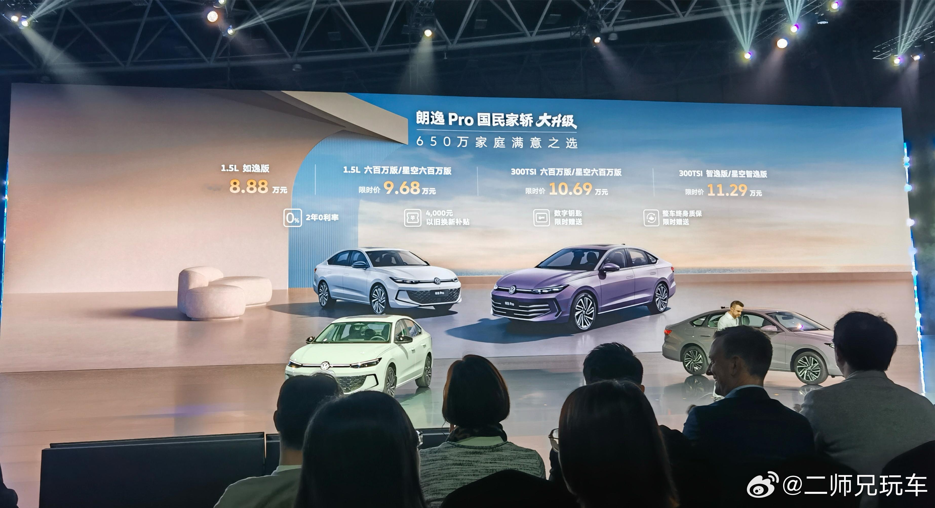 【“国民家轿”理应具备哪些素养?朗逸Pro给出了标准答案】昨晚参加了国民家轿朗逸 Pro的上市发布会。其实从前几天知道要参加这个发布会开始,我就在想一个问题:在这个油电齐飞,车型高度丰富的智能汽车新时代,什么样的车型才真正可称之为“国民家轿”?或者换一种问法:在智能汽车新时代,真正的国民家轿应该具有哪些素养?我想到了一些答案,而朗逸Pro的上市发布会也让这些答案变得更加清晰。1⃣️销量高市场认可:国民家轿是市场结果首先“国民家轿”不是喊口号喊出来的,它应该是市场既有的结果。就像朗逸家族,自2008年第一代朗逸上市以来,朗逸家族已经赢得了650万用户的信赖。单一车型累计销量超过600万辆的轿车恐怕屈指可数,所以朗逸Pro站在650万用户的基础上让人期待的是它将如何巩固朗逸国民家轿的地位,需要多久就把朗逸家族的累计销量带到700万辆、800万辆,而不必怀疑其“国民家轿”的身份。2⃣️品质与品牌被广泛认可:国民家轿离不开品牌背书“国民家轿”的品质与品牌理应具有很高的认可度。国民家轿理应也必然产生于高认可度的汽车品牌,只有具有广泛的群众基础与没什么选择成本的汽车品牌才可能诞生出国民家轿。上汽大众正是这样的品牌,朗逸、帕萨特、途观等多款车型长期稳居细分市场销量前列,其技术成熟度与售后网络覆盖度,在消费者中形成了广泛信任。这种认可度并非短期营销而来,而是源于多年来在品质、服务上的持续投入,成为国民家轿的重要背书。3⃣️亲民的价格:国民家轿的底色是 “普惠”“国民家轿”的第三个素养那一定是亲民的价格。国民家轿的重要底色是 “普惠”,价格需贴合大多数家庭的购车预算。朗逸Pro限时价8.88-11.29万元,叠加4000元置换补贴、2年0息金融政策、整车终身质保等权益,虽然经过了全面升级,但是新车价格并没有比老款车型的终端价格高多少,合理的定价可谓贯彻了国民家轿的“普惠”逻辑。4⃣️安全性高:国民家轿不负家庭所托“国民家轿”必须具有很高的安全性。越是普通家庭的用车,越是承载着一家人的快乐与希望,其安全性也越发重要。朗逸Pro承袭了德系安全基因,全车高强度及以上钢材使用比例达81%(一般来说,高强度及以上钢材占比80%以上就是比较优秀的了),至高搭载7安全气囊并新增了中央气囊,让驾乘人员被很好的保护着。朗逸Pro还历经了极地测试、极限工况雨淋试验、极端工况耐久测试等多维度的极限测试,让家庭长期用车没有后顾之忧。5⃣️美在线空间大:国民家轿能胜任各种场合“国民家轿”还需要具有素养就是空间大、颜值高。作为万千欧通家庭用车的国民家轿,往往是多用途的,它可能是男主人生意旅途上的伙伴,也可能是女主人接送孩子的代步工具,还可能是一家人节假日自驾游的用车。所以国民家轿得审美在线,能胜任各种场合,另外空间也得够用。朗逸Pro在这两方面的升级可谓巨大,朗逸Pro 的长宽高分别达到了4720mm、1806mm和1482mm,轴距为2688mm,来到了A+级的尺寸水准。朗逸Pro采用了Pro家族最新设计语言,经典风格与星空风格的双前脸设计,经典版沉稳大气,星空版则更具科技感和未来感;车身以黄金比例打造,流畅优雅;车尾采用宽阔简约的一体化设计,配备展翼式LED贯穿尾灯与红运LED发光LOGO,简洁大气;北欧家居风的内饰设计,简洁而富有质感。全新升级的朗逸Pro俨然成了一辆小帕萨特!6⃣️智能化实用够用:新时代的国民家轿智能化也不能含糊最后,智能汽车新时代的“国民家轿”在智能化上也不能拉垮,无论它是油车还是电车。看看朗逸Pro在智能化上做哪些升级。搭载了百度文心大模型,并与DeepSeek深度融合,打造出了双Al引擎协同的“车载全知大语言模型”,为用户带来了用车指南、知识百科、趣语闲聊、灵感绘画、文案创作等智能化功能。应用了腾讯生态,包括车载微信、腾讯地图登。车载微信可以完全通过语音操作;腾讯地图支持实时路况更新,动态规划最优路线,商家、景点、停车场等信息通过腾讯生态天级更新。升级的MQB-EVO智能架构下,数据传输和处理速度大幅加快,朗逸Pro也能提供车道保持、自动泊车等辅助驾驶功能。八万多元起售的朗逸Pro的智能座舱与辅助驾驶可以说也跟上了智能汽车新时代的步伐,也基本够用了,也更加当得起新时代的“国民家轿”了!结束语🔚全面升级而价格不升级的朗逸Pro可谓为智能汽车新时代的“国民家轿”打了一个样,朗逸家族累计销量突破700万辆估计也不会需要太长时间。最后也想问一下大家,你认为销量高市场认可、品质与品牌具有很高的认可度、价格亲民、安全性高、审美在线空间大、智能化实用够用这六大特点是不是“国民家轿”必须具备的素养?除了朗逸Pro,现在还有哪些车型能称得上“国民家轿”?