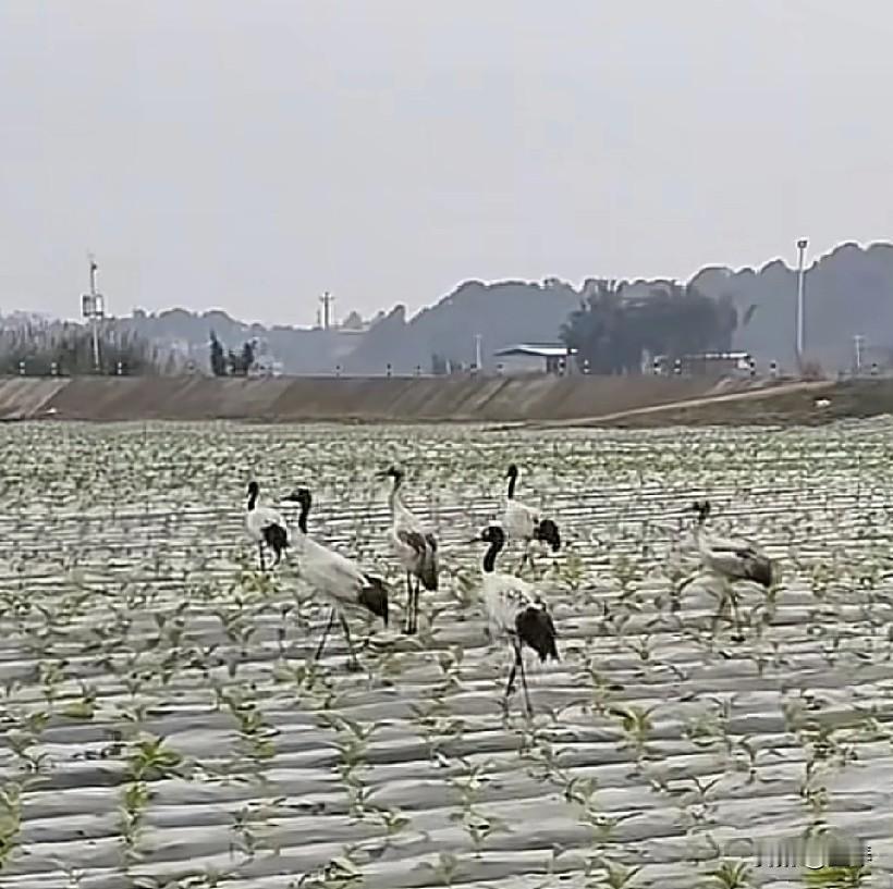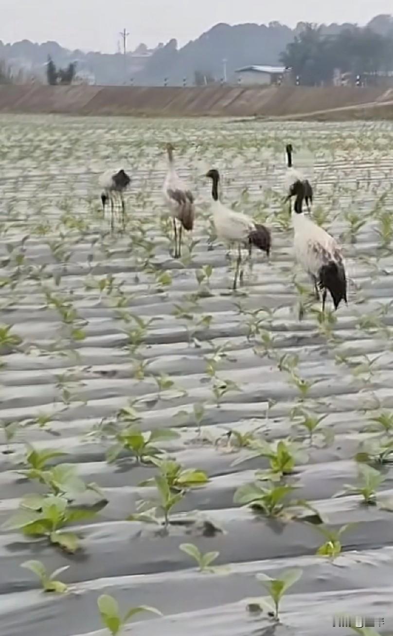 宜宾泥溪一农户烟地发现野生保护动物——“黑颈鹤”。看来大宜宾的生态确实是好起来了! “亲爱的观众朋友们,这里是四川宜宾泥溪镇—— 你们看这盖地膜的田埂上,嫩苗刚抻开叶,黑颈鹤就迈着慢悠悠的步子来‘串门’了。 远山裹着轻雾,风里是刚翻的土香,连空气都软乎乎的。 庄稼守着时令长,珍禽挑着暖处栖,这就是泥溪最生动的‘生态日常’呀~ 怎么样,你们喜欢吗?”