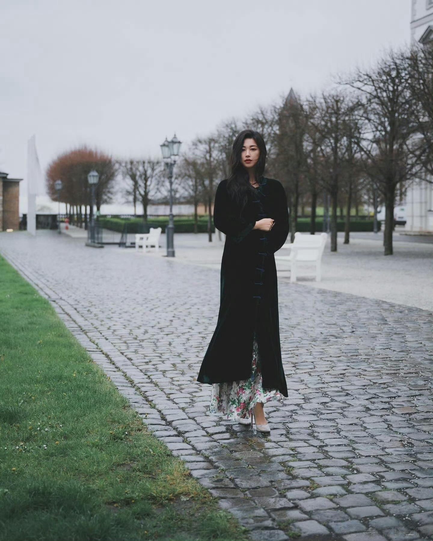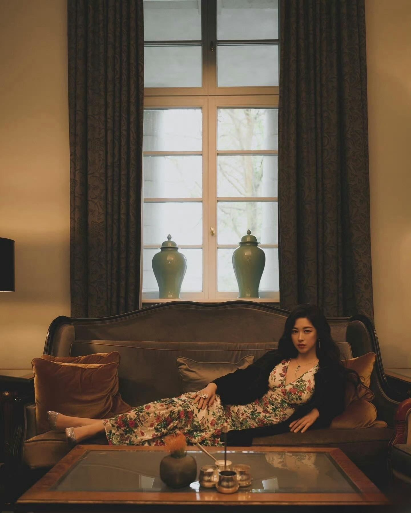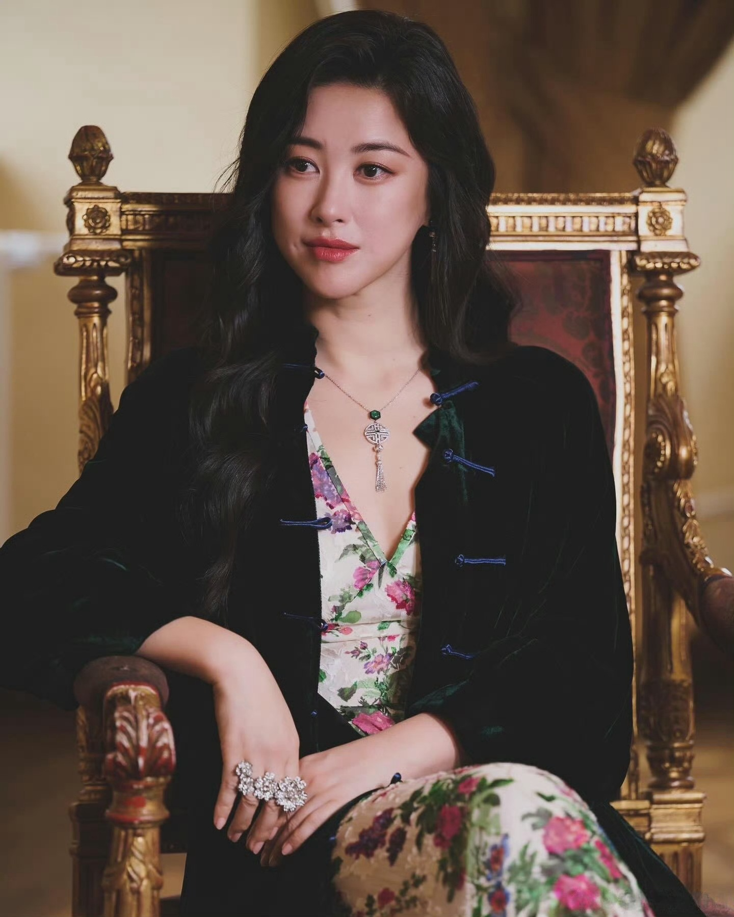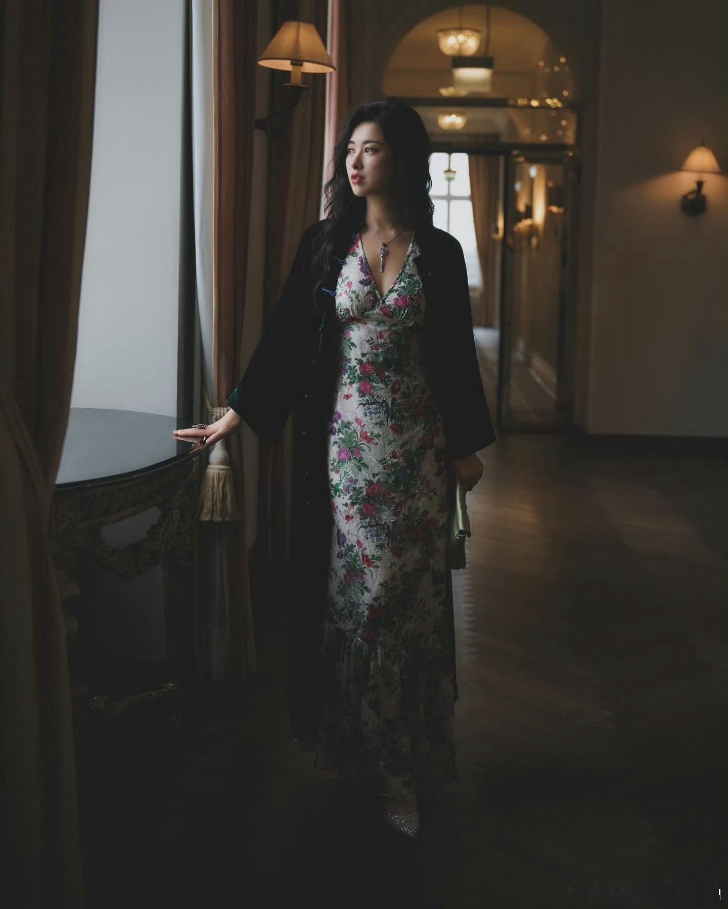 朱珠新中式穿搭杀疯了!印花长裙配复古卷发,豪门阔太的松弛感原来长这样?