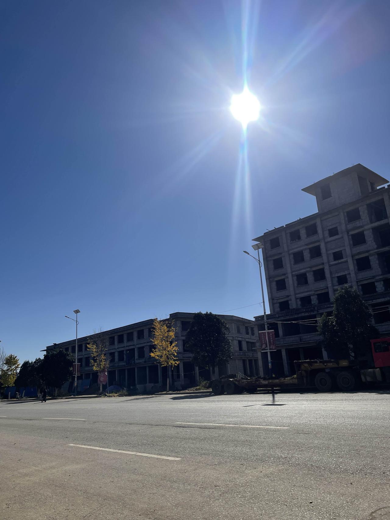 今天出门碰上个特敞亮的晴天,太阳跟个灯泡似的悬天上,光刺得人眯眼。路边那几栋楼看着像没完工,灰扑扑的墙配着空窗户,倒衬得旁边黄叶子的银杏挺扎眼。 大路上没几个人,就瞧见辆工程车趴那儿,影子拉得老长。风一吹树叶晃悠,晒得人后背暖乎乎的,明明是半拉子工地,倒因为这好天气,生出点懒洋洋的舒服劲儿来。