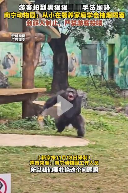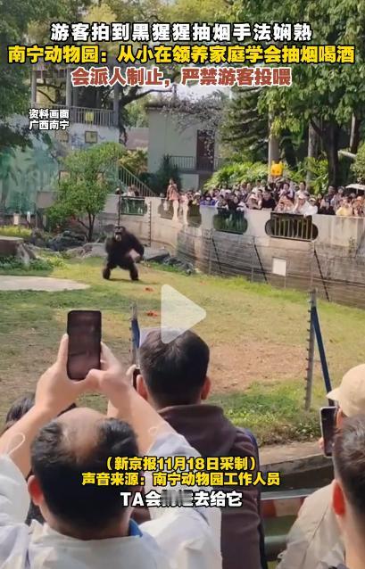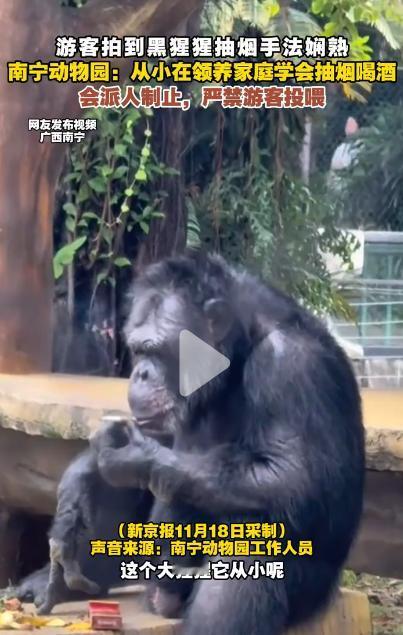 猩猩不仅抽烟,还会藏烟?这操作谁看了不惊讶! 事情起因是广西南宁动物园的一只黑猩猩,吞云吐雾的手法娴熟到让人咋舌。这只猩猩可不简单,它早年跟着德国夫妇生活时通过观察就自己学会了抽烟喝酒,被发现后总有些人偷偷扔烟和打火机给它。更绝的是,这只猩猩还会“吃独食”——在检查时还会把烟和打火机藏起来,而且享受完还会自己按灭烟头防止走火。 动物园的工作人员对这样特殊的烟民也很无语,只能不停加强巡逻。但还是抵不过一些游客的烟杆子投喂。但是尼古丁不仅仅对人有危害,对于猩猩来说也是一样有伤害的。虽然这只猩猩是个老烟枪,但也不要可以投其所好! 动物园回应猩猩抽烟:它会藏烟 猎奇