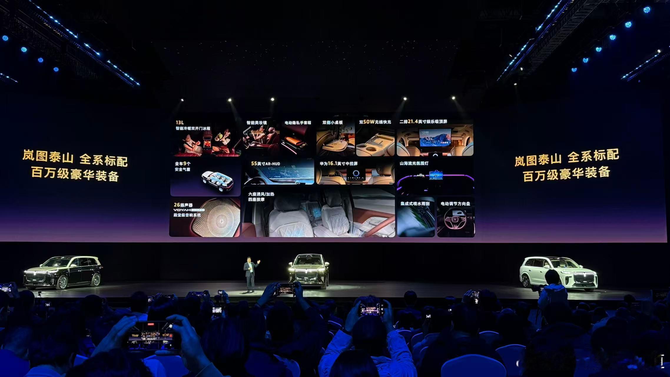 豪华大六座SUV岚图泰山上市,4款配置,指导价37.99-50.99万元。新车搭载最新版鸿蒙座舱语音大模型、华为ADS Ultra四激光雷达智能辅助驾驶方案、AI云舒座椅、32扬声器音响系统以及最新的三腔空气悬架等配置,大有剑指问界M9的意味。此外,岚图泰山黑武士版将限量发售,明年一季度与大家见面。