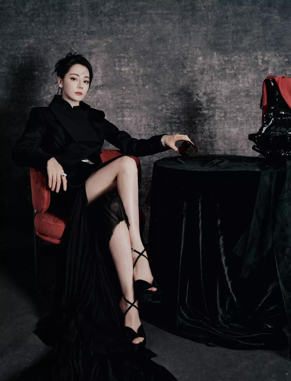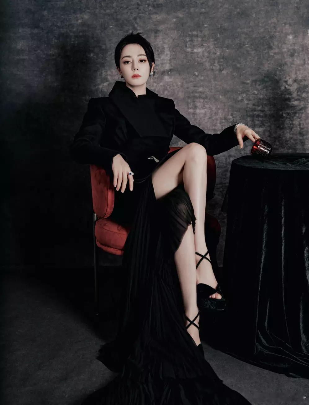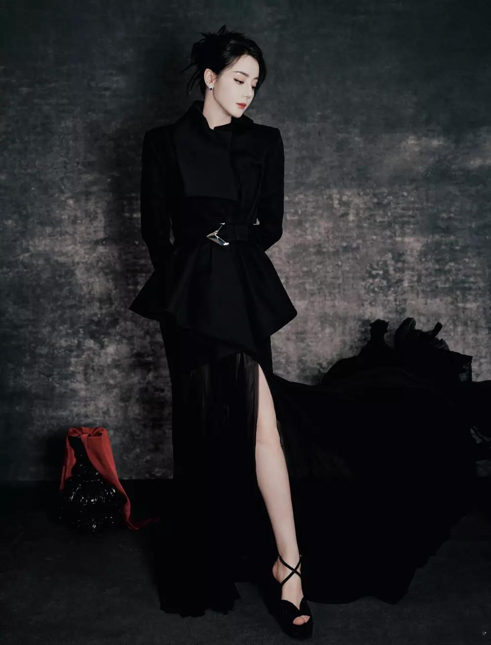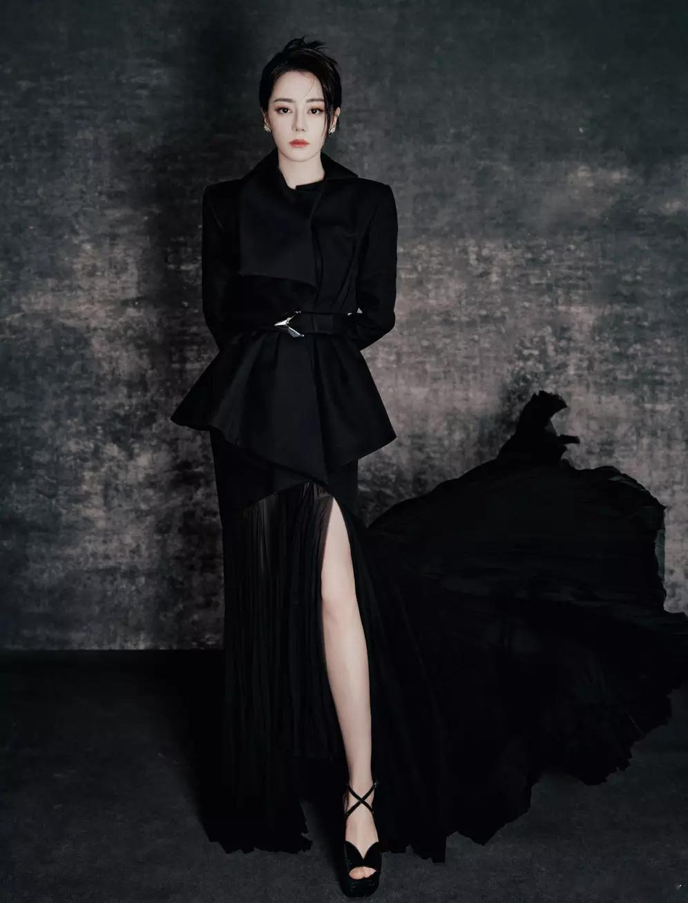 迪丽热巴仿佛化身暗夜女王,气场全开,一双白皙美腿修长吸睛!