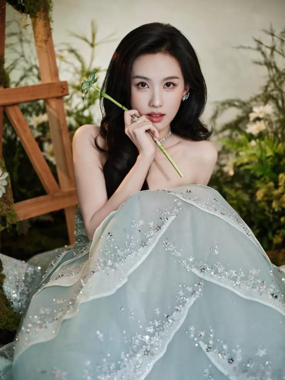 陈都灵穿浅蓝色抹胸渐变纱裙现身活动,照片里的她黑发披肩,优雅温柔,眉眼间风情万种。