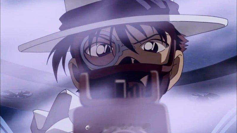 雾色漫开时,礼帽下的单镜片冷光一闪,怪盗基德的枪口轻抬——他是踩着月光来赴约的