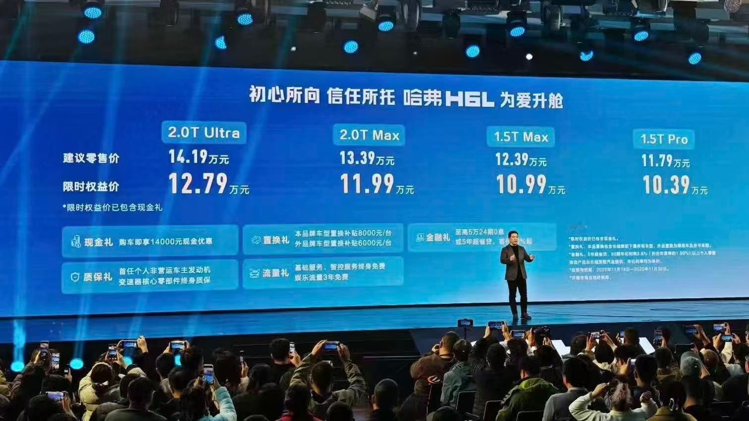 又一辆神级车上市了!谁还记得哈弗6在SUV市场上霸榜103个月的奇迹?11月18日哈弗H6L上市 限时权益价10.39万元起,这次不仅仅是车型升级这么简单,著名主持人李思思也亲临现场,为爱站台!油耗高一直是SUV的痛点,尤其是喜欢旅游的朋友们,一定深有体会!而哈弗H6L这次主打省心、省油,为家庭、伙伴节省用车成本,而且只要10.39万就能买大五座SUV,这个价格真的够划算!动力方面,不到13w就能买个2.0T动力+9DCT变速箱,主打一个花小钱办大事,开着也省力;WLTC油耗只有7.4L,不仅省力还省油!什么概念呢?假设一年行驶2万公里,一年就能省下一部手机钱!省下来的钱多出去玩几次不香吗?智能化方面,对开车小白还是很友好的,哈弗H6L配备了L2级辅助驾驶,有自动泊车和W-HUD抬头显示功能,这些豪车才有的功能也都给你安排了,如果你停车不熟练或者有时候停车位比较窄,自动泊车会很大程度帮助你解决停车问题,驾驶体验感大大加分,省心up!这次哈弗H6L可以说是诚意满满,不知道还能否创造新的销量传奇,一起期待一下!魏建军称品牌年轻化关键在于团队年轻