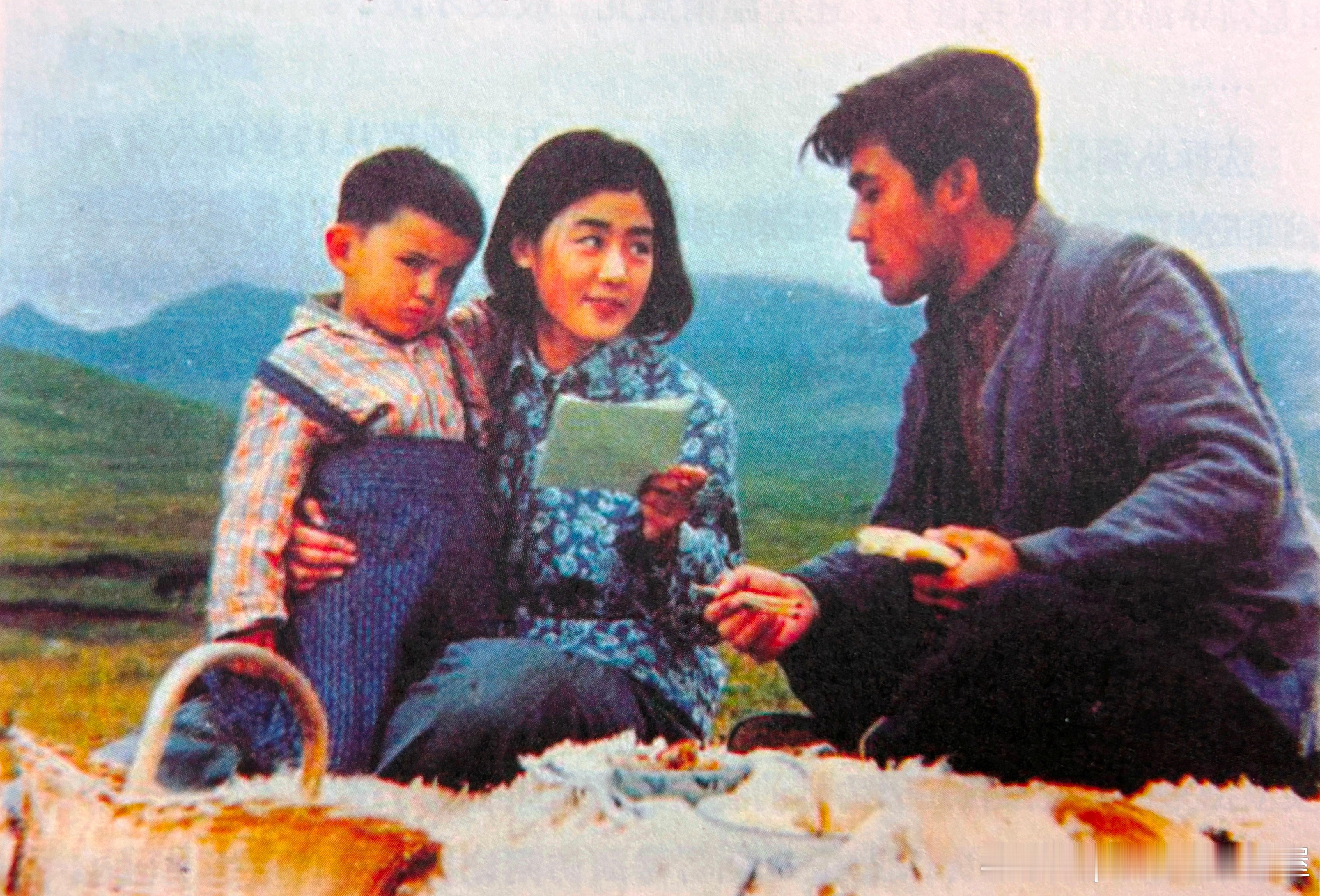 1982年电影《牧马人》剧照,方超饰演的儿子清清、丛珊饰演的四川苦命女李秀芝与朱时茂饰演的小学教师许灵均