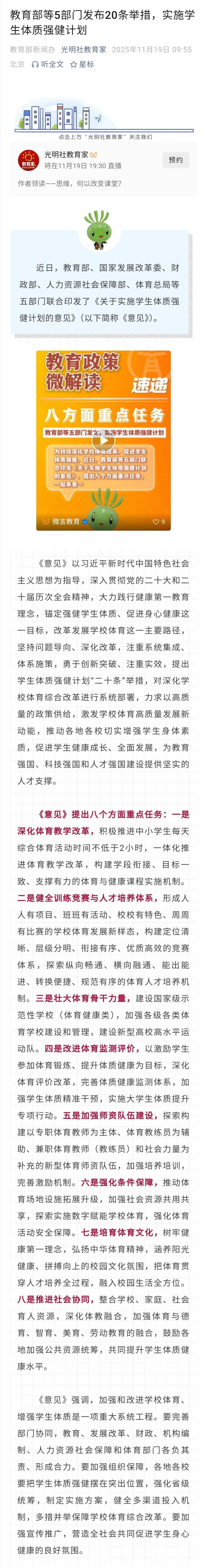 关键是落实。 很多文件,到了基层学校那里,就是“文件”,学过了,就是做过了,做过了,就是做好了。 地方也是以发文件的方式,来表示自己重视,看各地加强体育、美育、劳育的经验介绍文章,基本都是何时发了什么文件。文件写得都很好,令人振奋,只要一个文件落实了,都不需要再发文件了。 以会议落实会议,以文件落实文件,这种落实该改了。