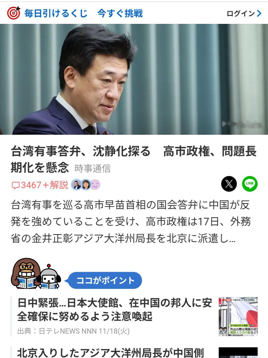 日本发言人在17日的记者会上再次批评中国,针对中国呼吁本国民众避免赴日旅行、慎重规划留学一事,称这是"似乎会让人员交流萎缩的发布"。 批评要是有用,这个世界上就不会有俄乌战争,巴以冲突,委内瑞拉的船被炸。日本批评中国,你有资格吗?中国没听见。中国看见的是日本极右翼分子及军国主义分子裹挟下的日本仇中情绪,先反思好自己再批评中国吧! 高市早苗希望把中日争论态势限制在外交领域,不外溢到经济领域,从而让她获得更多右翼支持,可以让她解散国会重新大选,解决自民党联合政府不过半的问题。中国希望借此剪除台湾的外部支持的羽翼。上半年关税战,美国已经往后撤了,所以赖今年在极速向日本靠近,所以大陆这次必须无限升级,把倚日谋独的说法也打掉。今年王沪宁在两岸统一的工作会上说,要塑造两岸统一的大势,打击外部势力支持,就是一环,这个中国不会妥协的,会一直升级下去。高市和麻生对中国反应的烈度做了误判。