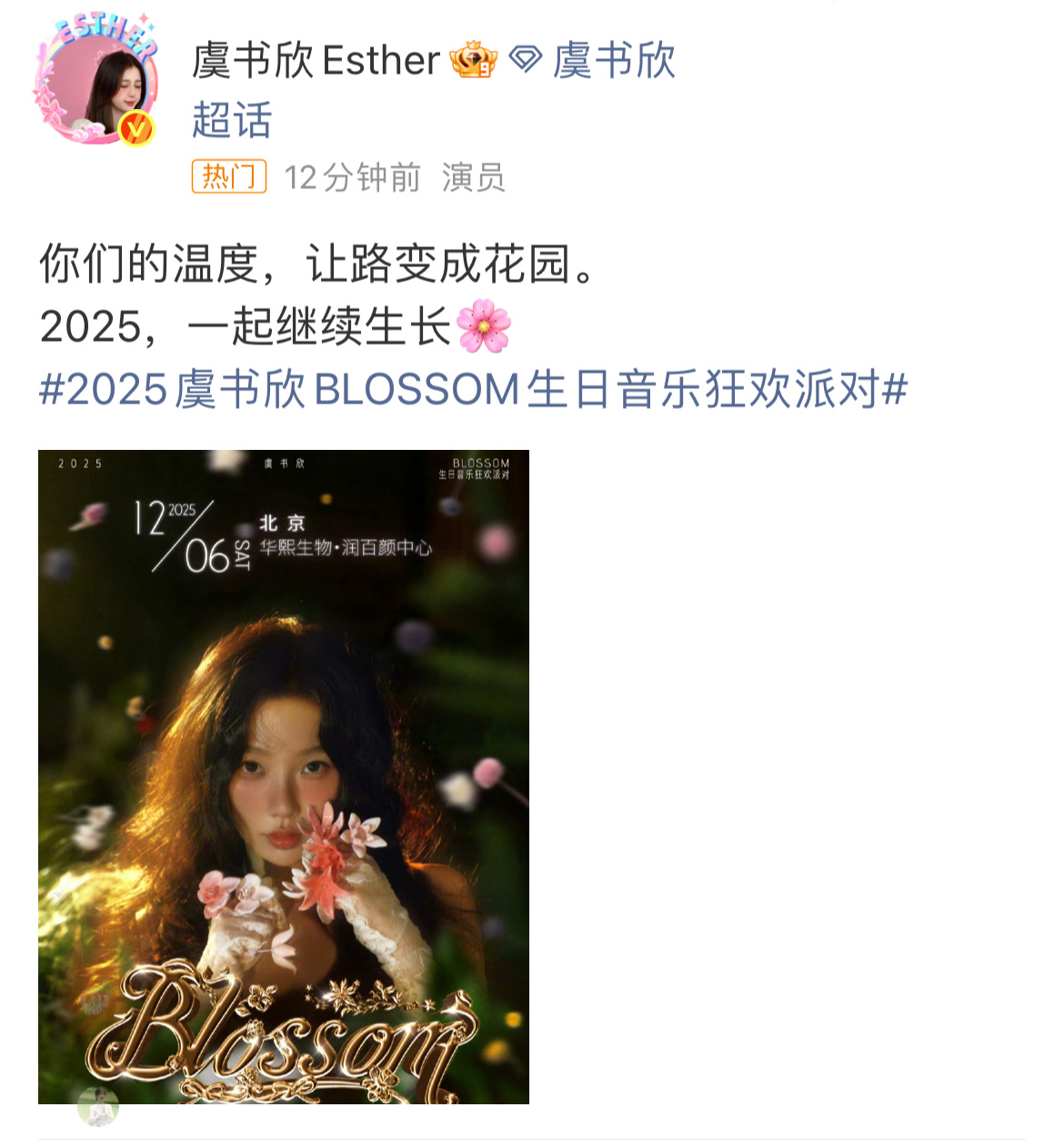 ⏰11月21日(大概率具体时间不清楚)2025虞书欣BLOSSOM生日音乐狂