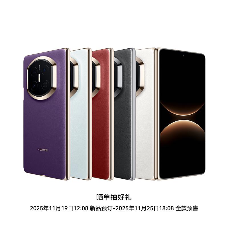 华为 Mate X7 上架华为商城全款预售,曜石黑、云锦蓝、云锦白、寰宇红、幻影紫 5 款配色,12+256GB、12+512GB、16+512GB 典藏版、16GB+1TB 典藏版 4 个内存版本,没有 Mate 70 RS 专属的 20GB 内存版本。 典藏版和普通版的区别除了内存、闪存规格之外,电池容量、外屏玻璃、卫星通信上会有一些差别,另外就是典藏版要等,明年 1 月 17 日前发货。[吃瓜群众]