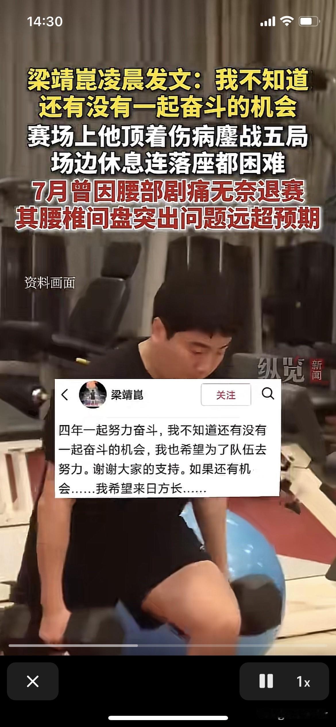 大胖梁靖崑凌晨发文。大胖腰有伤。 不知道大胖梁靖崑还能不能去参加成都的混合团体世界杯。大胖如果因伤不能参加混合团体世界杯,那么谁去?向鹏吗? 混合团体世界杯男队有王楚钦林诗栋梁靖崑徐瑛彬四人参加。 希望大胖的腰伤早点好 大家都喜欢甜甜,给大家带来欢乐。 甜甜加油,早日康复[玫瑰][玫瑰][玫瑰]