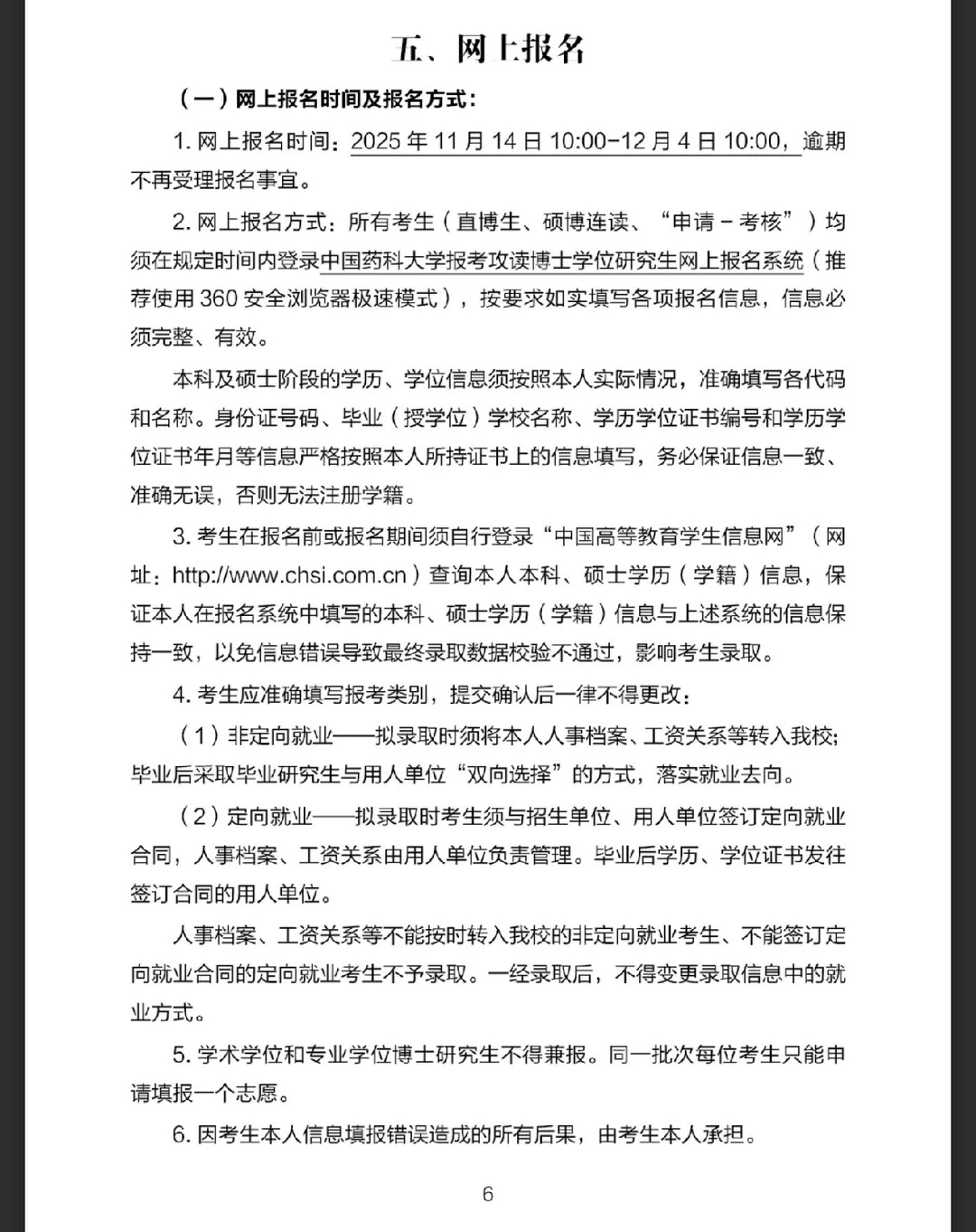 2. 网上报名方式:所有考生(直博生、硕博连读、“申请一考核”)均须在规定时间内登录中国药科大学报考攻读博士学位研究生网上报名系统(推荐使用360安全浏览器极速模式),按要求如实填写各项报名信息,信息必须完整、有效。
