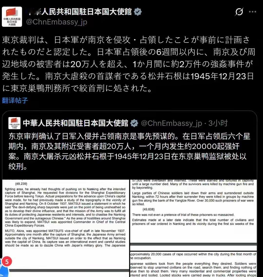 上强度! 中国驻日大使馆发布南京大屠杀真相