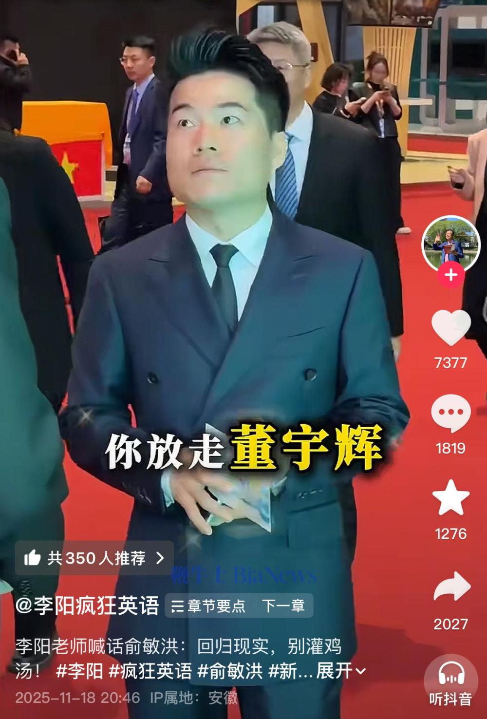 此外,李阳在视频中还进一步指责俞敏洪“狭隘”,称放走董宇辉是重大损失。