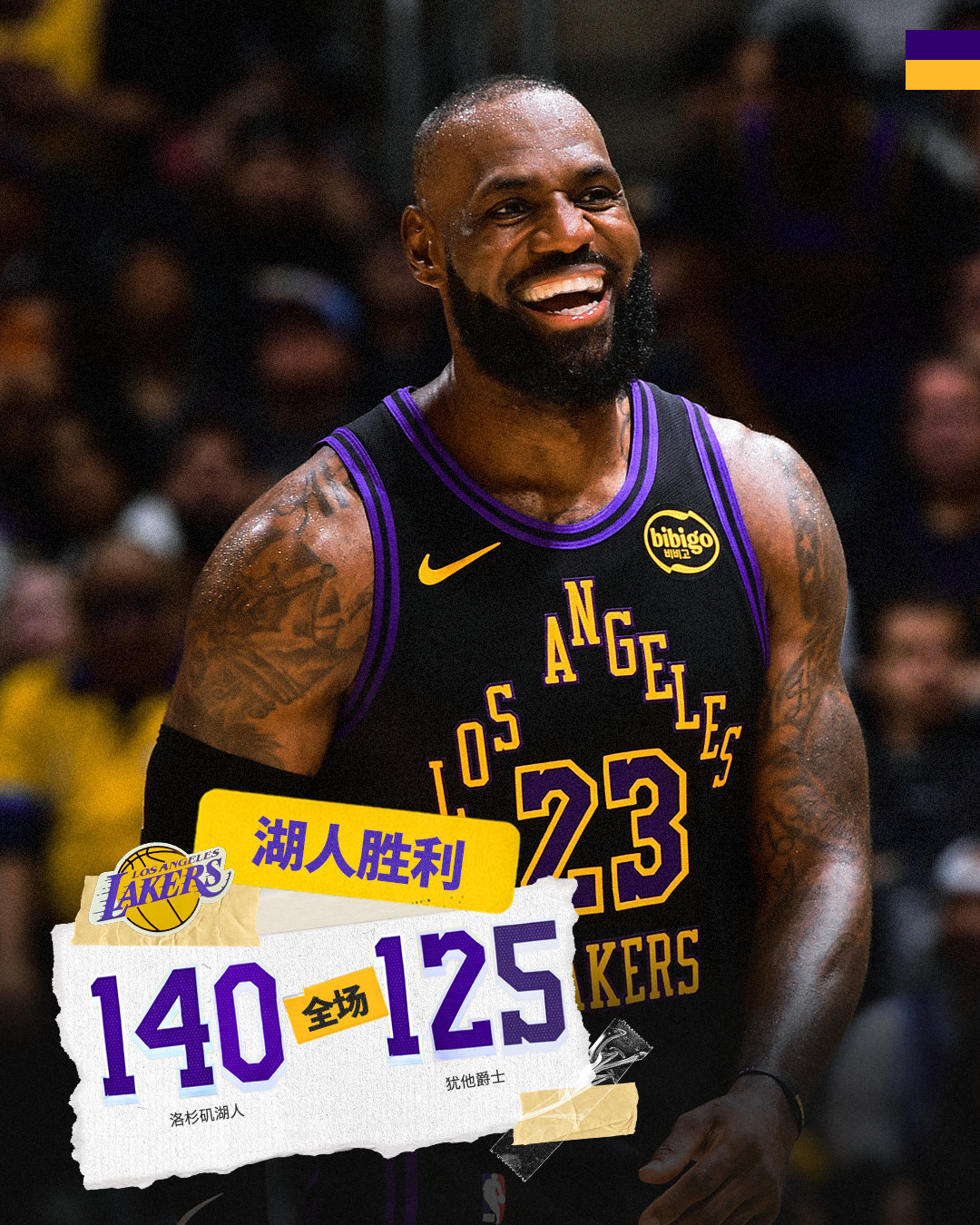 「 | 全场🔚」湖人1️⃣4️⃣0️⃣ - 1️⃣2️⃣5️⃣爵士 37分 5篮板 10助攻; 26分 5篮板; 20分 14篮板;拉拉维亚 16分 4篮板詹姆斯首秀即拿下两双, 11分 3篮板 12助攻完美的回归秀!🔥对未来充满期待 戳链接,为我湖球员今天精彩表现评分👉
