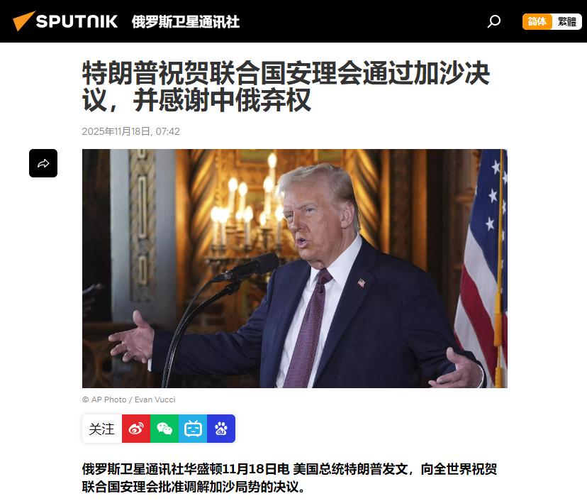 特朗普公开表态,感谢中国!高市早苗此时作何感想!   11月17日,联合国安理会以13票赞成、0票反对、2票弃权的结果通过了美国起草的涉加沙决议,核可了特朗普提出的“20点计划”,同意成立和平理事会作为加沙过渡行政机构,而这一切能顺利落地,关键就在于握有一票否决权的中国和俄罗斯最终投了弃权票。   第二天,特朗普就在社交平台发文庆祝,特意点名称谢中国、俄罗斯等国,直言这是“具有历史意义的时刻”,而这份感谢对正处政治漩涡中的高市早苗来说,无异于迎面泼来一盆冷水。   高市早苗自上台后就一直把“绑定美国”当作核心政治策略,为了向特朗普政府证明日本的价值,她11月7日在国会公然宣称“台湾有事若使用战舰并伴随武力,可能构成日本存亡危机事态”,暗示要动用集体自卫权介入台海,这种表态连安倍晋三当年都不敢轻易做出。   为了巩固美日关系,高市早苗还砸下5500亿美元推进美日合作项目,满以为能靠激进反华姿态换取美国在安保和经济上的倾斜,让日本在亚太战略中更有分量,自己的执政根基也能随之稳固,可特朗普的表态直接戳破了她的幻想。   特朗普此前接受采访时就曾直言“很多盟友在贸易上占美国便宜比中国还多”,如今更是直接发文感谢中国,等于公开表明在核心利益议题上,美国根本不会被日本的“反华投名状”绑架。   高市早苗的政治基本盘本就脆弱,她靠右翼势力支持才勉强组阁,公明党退出后只能与激进维新会结盟,如今讨好美国的算盘落空,等于抽走了她对外政策的支柱。   更让高市早苗坐立难安的是,国内的反对声浪已汹涌成潮。她的涉台言论一出,日本社交媒体上立刻涌现“高市辞职”“撤回发言”等多个热门标签,网民怒斥她“煽动战争将国民拖下水”。   而此时特朗普转头感谢中国,等于给她的政治人设来了记“釜底抽薪”,那些原本支持她的保守派也开始质疑其对美关系的判断力。   雪上加霜的是,中国外交部借势反击,11月19日明确表示日本“未彻底反省战争罪责,没有资格成为联合国安理会常任理事国”,直接点出高市的错误言论是对二战后国际秩序的挑战。   这让一直谋求“政治大国”地位的日本陷入被动,而主导这一切的高市早苗自然成了众矢之的。她本想靠反华绑住美国,结果美国与中国在安理会形成“默契”,自己反倒成了中美互动中的“局外人”。   5500亿美元的投入“打了水漂”,国内又骂声一片,外交上颜面尽失,这样的处境怎能不让高市早苗后背发凉。