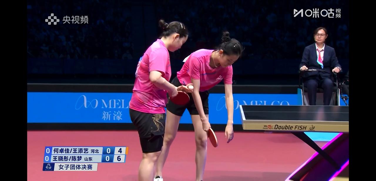 山东队与河北队的女团冠军之争, 现在大比分是2:1, 陈梦上场双打与单打都赢了, 单打3:0赢了王曼昱, 接下来孙颖莎又要上场了, 看来陈梦的团队任务已经完成了, 一单两分了。 究竟冠军花落谁家, 今天看来得到决胜局了。