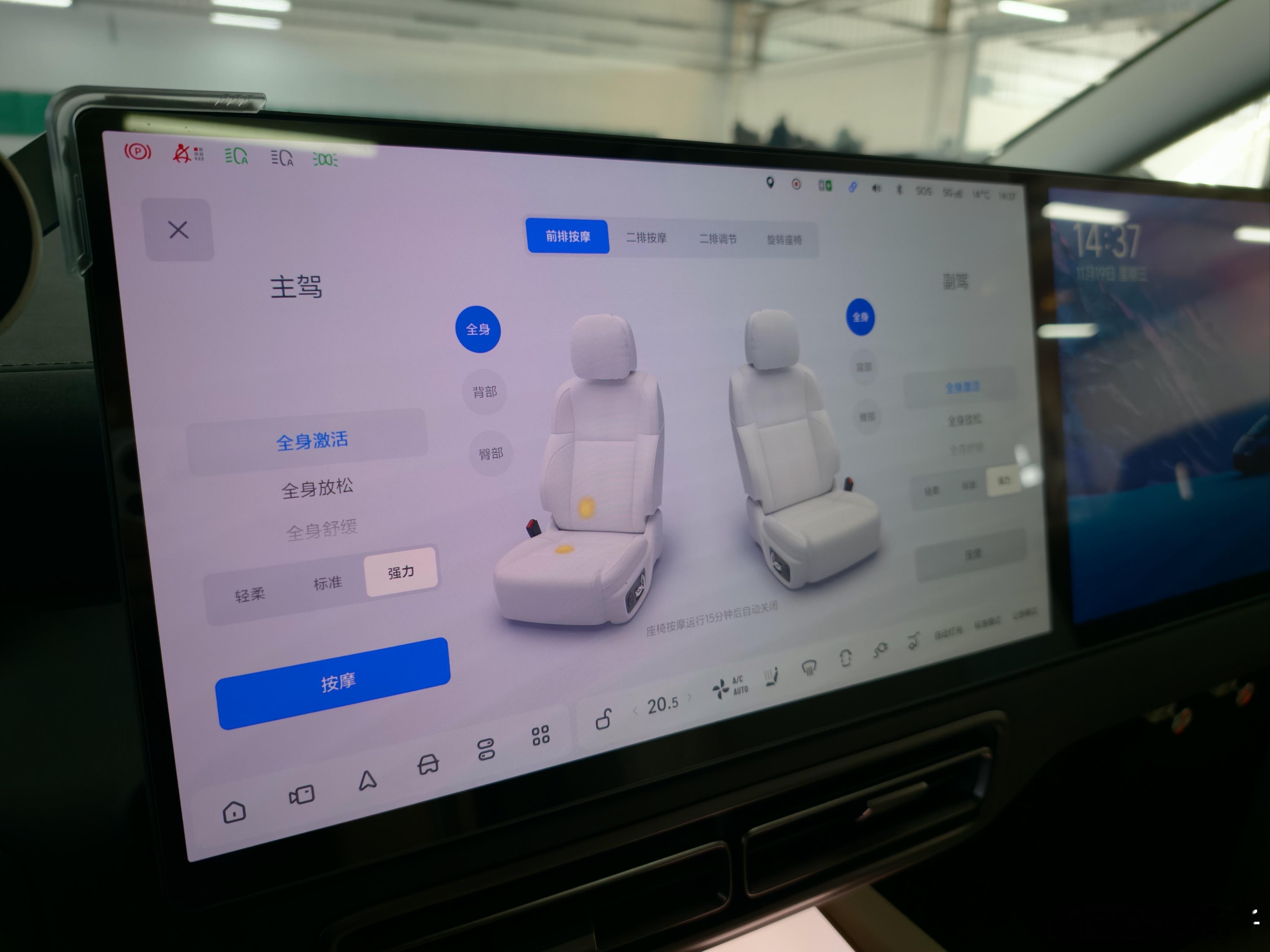 不管你喜不喜欢智己LS9,但都建议大家去试一下它的4D按摩,跟气囊按摩完全不是一个东西而且那个还带热石打过球,下班用一下,太爽了当年买mega的时候,我这个座椅按摩是带屁股的,就觉得挺爽,但是体验过LS9的绝对回不去了