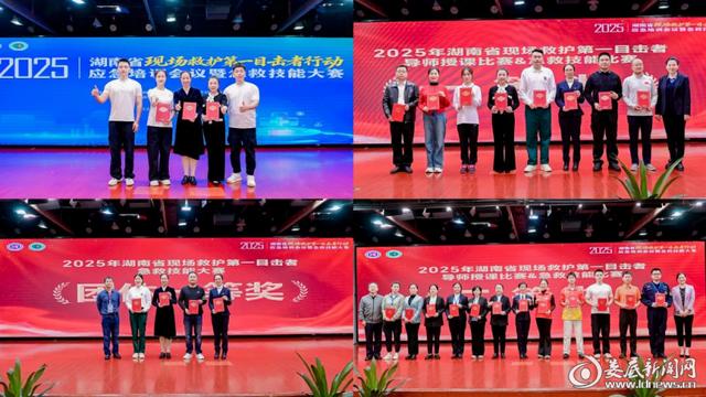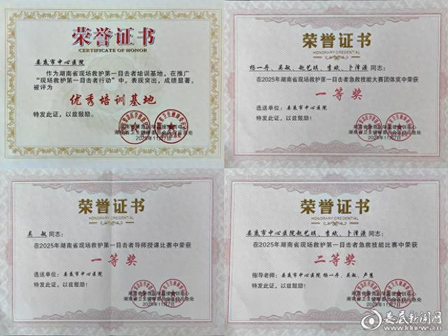 其中,该院临床技能培训中心吴敏以《“心心相印,心手相牵”——胸外心脏按压》为题,凭借扎实专业功底和出色教学能力,荣获导师授课比赛冠军;由设备维修科李斌、质控病案管理科赵艺琪、纪检监察室卜泽源组成的非医疗专业背景队伍获技能比赛二等奖;两项成绩相加,该院代表队斩获团体一等奖。此外,娄底市中心医院还因完善的培训体系与显著的科普成效,被授予湖南省“现场救护第一目击者优秀培训基地”称号。