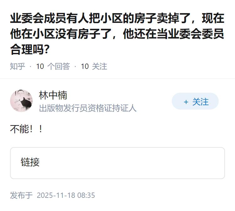 业委会成员有人把小区的房子卖掉了,现在他在小区没有房子了,他还在当业委会委员合理吗?